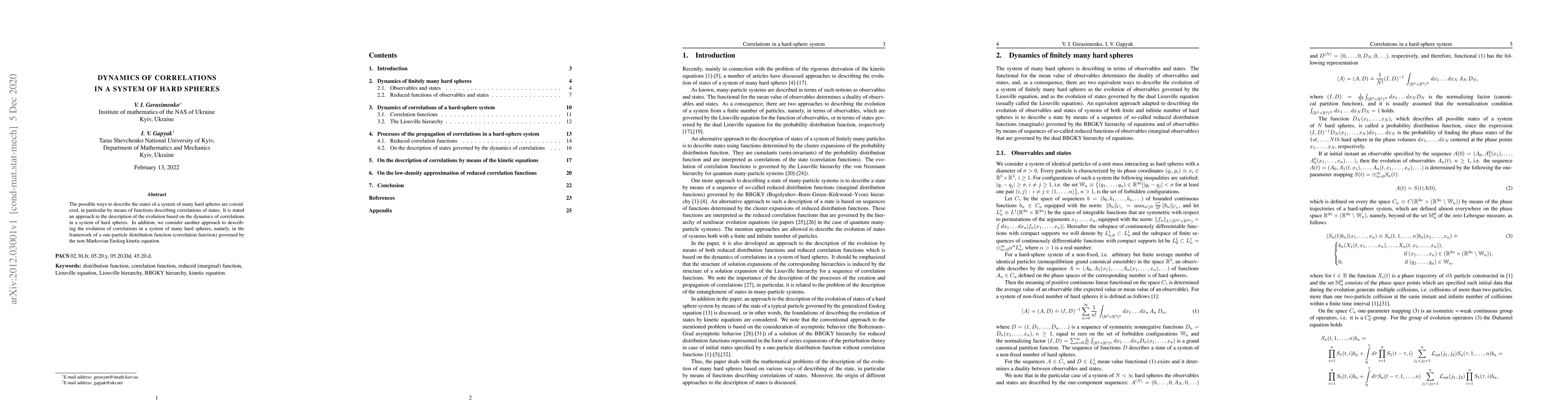 This research explores methods to describe the states and evolution of a system of hard spheres using correlation functions, highlighting dynamics based on evolving correlations and another approach via the non-Markovian Enskog kinetic equation.