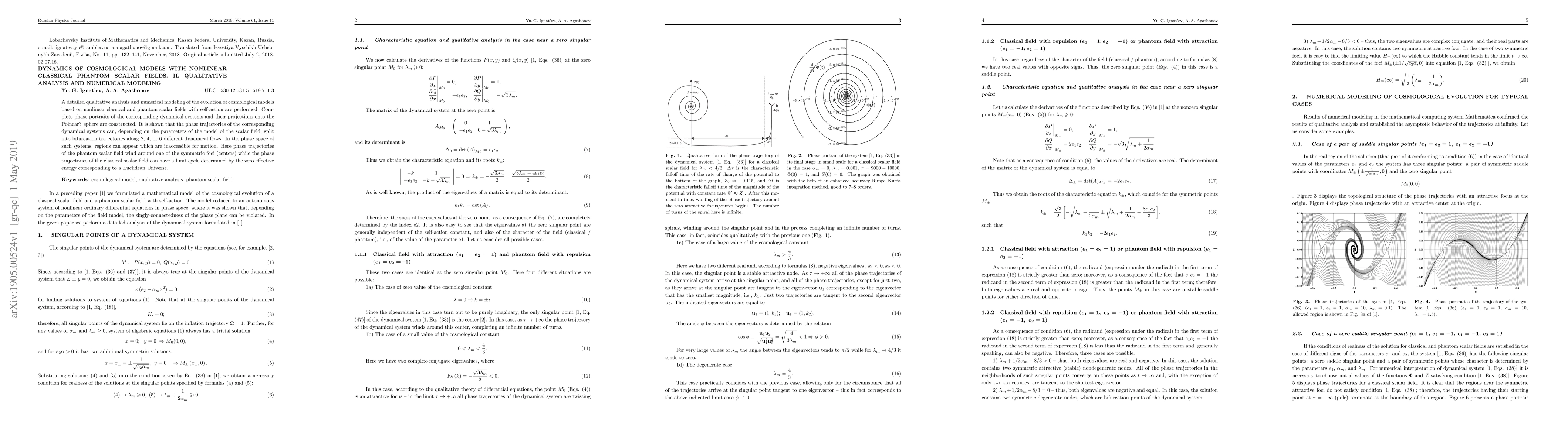 This paper conducts a qualitative analysis and numerical modeling of cosmological models incorporating nonlinear classical phantom scalar fields. It reveals that phase trajectories can bifurcate into multiple dynamical flows and identifies regions in phase space that are inaccessible, with phantom scalar fields winding around symmetric foci and classical scalar fields potentially exhibiting limit cycles.