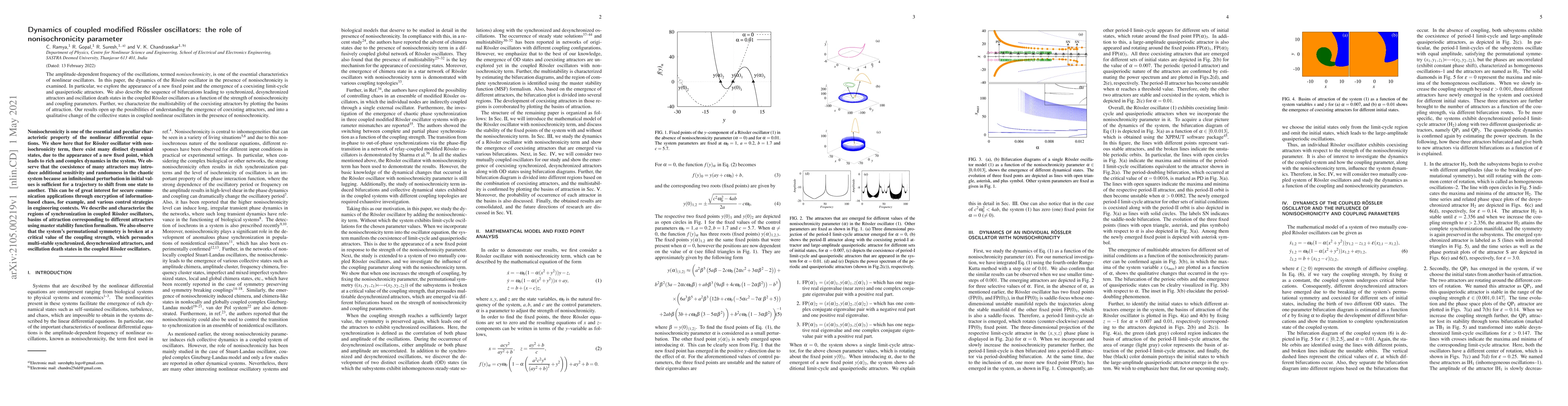 This paper investigates the dynamics of coupled modified Rossler oscillators under nonisochronicity, revealing new fixed points, coexisting limit-cycles, and quasiperiodic attractors. It explores the bifurcation sequences leading to synchronized, desynchronized states, and oscillation death, highlighting the multistability of attractors through basins of attraction plots.