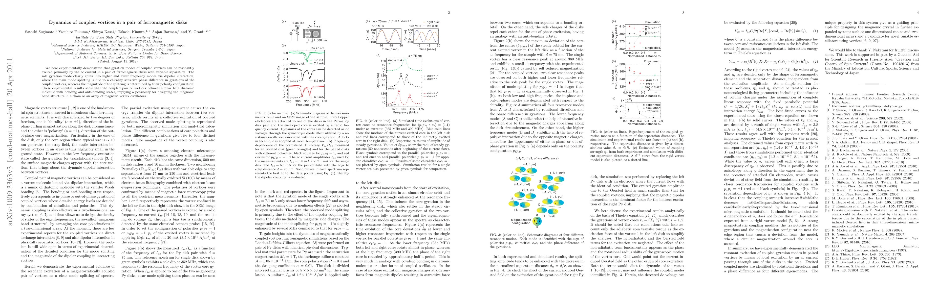 Demonstrates resonant excitation of coupled gyrotational modes in paired vortices, providing new insights into magnetic vortex dynamics and potential applications in magnonic devices