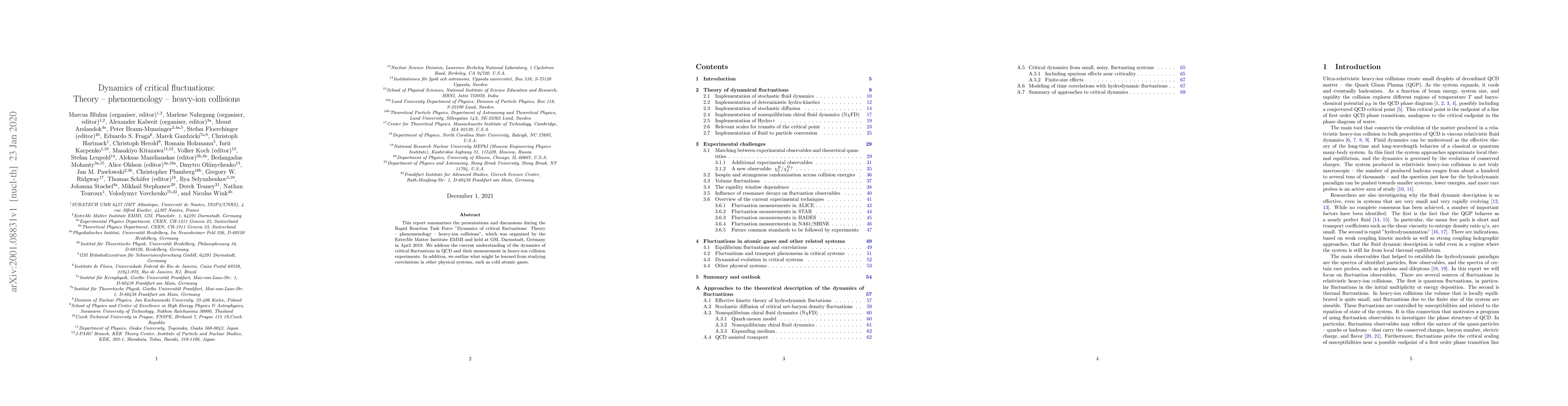 This report summarizes the presentations and discussions during the Rapid Reaction Task Force "Dynamics of critical fluctuations: Theory -- phenomenology -- heavy-ion collisions", which was organized by the ExtreMe Matter Institute EMMI and held at GSI, Darmstadt, Germany in April 2019. We address the current understanding of the dynamics of critical fluctuations in QCD and their measurement in heavy-ion collision experiments. In addition, we outline what might be learned from studying correlations in other physical systems, such as cold atomic gases.