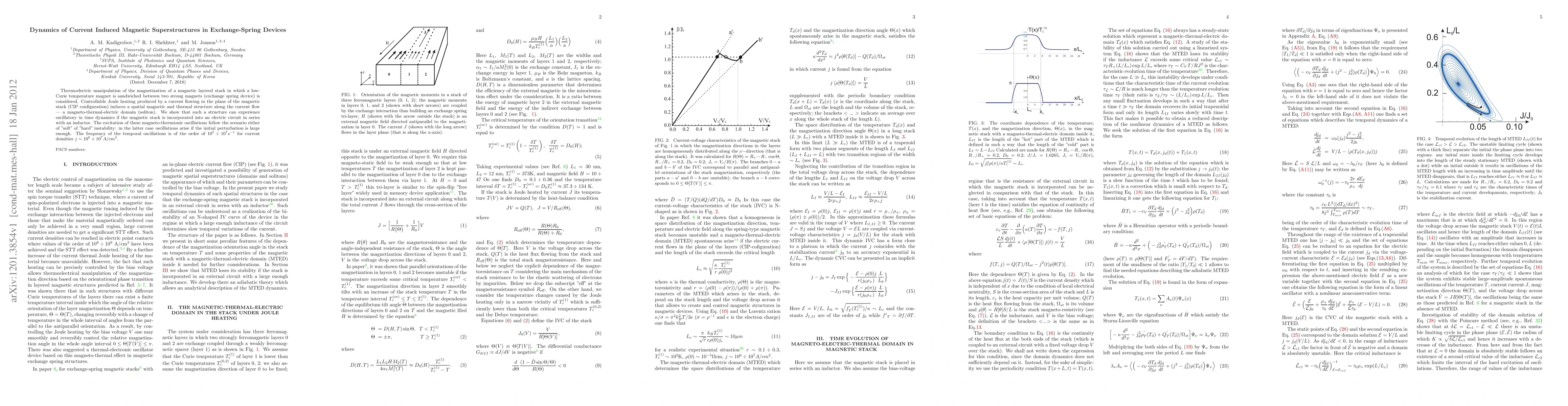 Researchers discovered a new phenomenon in exchange-spring devices where current flow creates oscillatory magnetic structures that can be controlled through electric circuits. These structures exhibit frequencies of up to 10^7 Hz at high current densities.