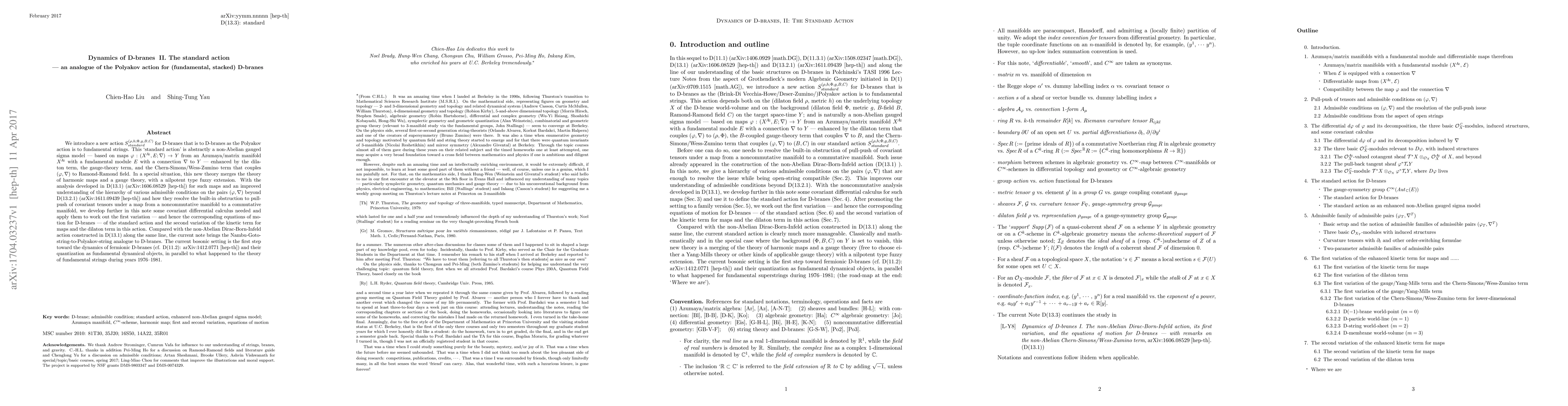 We introduce a new action $S_{standard}^{(\rho,h; \Phi,g,B,C)}$ for D-branes that is to D-branes as the Polyakov action is to fundamental strings. This `standard action' is abstractly a non-Abelian gauged sigma model --- based on maps $\varphi: (X^{\!A\!z},E;\nabla)\rightarrow Y$ from an Azumaya/matrix manifold $X^{\!A\!z}$ with a fundamental module $E$ with a connection $\nabla$ to $Y$ --- enhanced by the dilaton term, the gauge-theory term, and the Chern-Simons/Wess-Zumino term that couples $(\varphi,\nabla)$ to Ramond-Ramond field. In a special situation, this new theory merges the theory of harmonic maps and a gauge theory, with a nilpotent type fuzzy extension. With the analysis developed in D(13.1) (arXiv:1606.08529 [hep-th]) for such maps and an improved understanding of the hierarchy of various admissible conditions on the pairs $(\varphi,\nabla)$ beyond D(13.2.1) (arXiv:1611.09439 [hep-th]) and how they resolve the built-in obstruction to pull-push of covariant tensors under a map from a noncommutative manifold to a commutative manifold, we develop further in this note some covariant differential calculus needed and apply them to work out the first variation --- and hence the corresponding equations of motion for D-branes --- of the standard action and the second variation of the kinetic term for maps and the dilaton term in this action. Compared with the non-Abelian Dirac-Born-Infeld action constructed in D(13.1) along the same line, the current note brings the Nambu-Goto-string-to-Polyakov-string analogue to D-branes. The current bosonic setting is the first step toward the dynamics of fermionic D-branes (cf. D(11.2): arXiv:1412.0771 [hep-th]) and their quantization as fundamental dynamical objects, in parallel to what happened to the theory of fundamental strings during years 1976--1981.