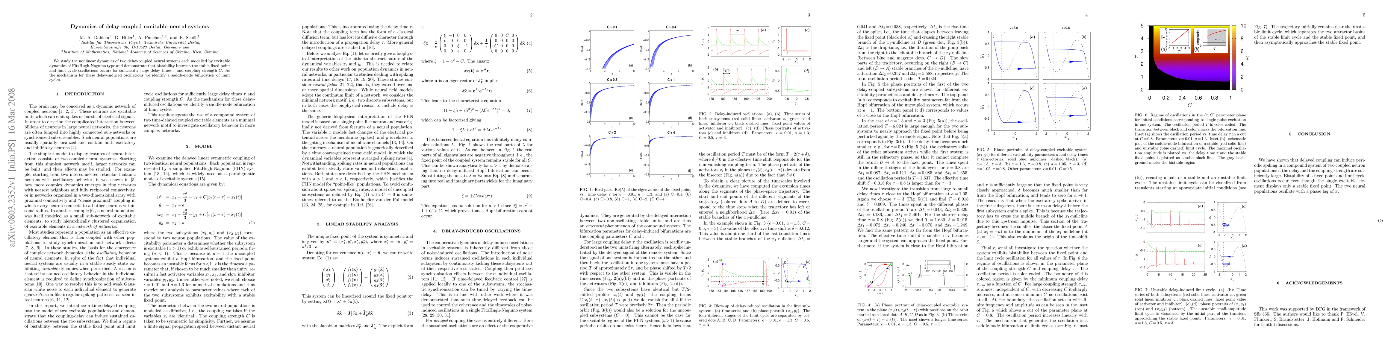 This paper explores the dynamics of two delay-coupled neural systems modeled by FitzHugh-Nagumo excitable dynamics, revealing bistability between fixed points and oscillations due to large delay times and coupling strength, driven by a saddle-node bifurcation of limit cycles.