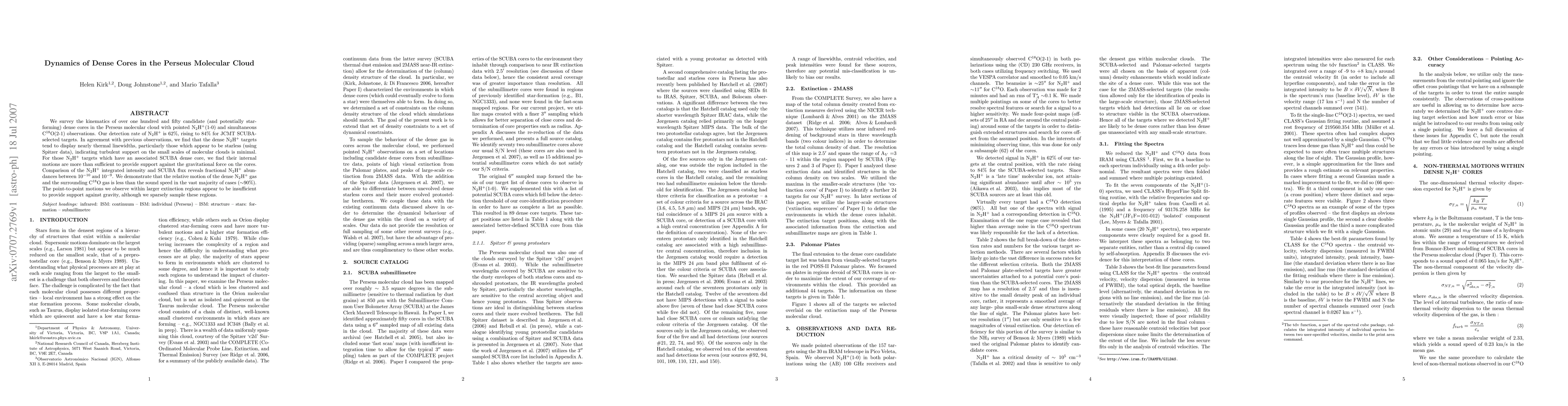 We survey the kinematics of over one hundred and fifty candidate (and potentially star-forming) dense cores in the Perseus molecular cloud with pointed N2H+(1-0) and simultaneous C18O(2-1) observations. Our detection rate of N2H+ is 62%, rising to 84% for JCMT SCUBA-selected targets. In agreement with previous observations, we find that the dense N2H+ targets tend to display nearly thermal linewidths, particularly those which appear to be starless (using Spitzer data), indicating turbulent support on the small scales of molecular clouds is minimal. For those N2H+ targets which have an associated SCUBA dense core, we find their internal motions are more than sufficient to provide support against the gravitational force on the cores. Comparison of the N2H+ integrated intensity and SCUBA flux reveals fractional N2H+ abundances between 10^-10 and 10^-9. We demonstrate that the relative motion of the dense N2H+ gas and the surrounding C18O gas is less than the sound speed in the vast majority of cases (~90%). The point-to-point motions we observe within larger extinction regions appear to be insufficient to provide support against gravity, although we sparsely sample these regions.