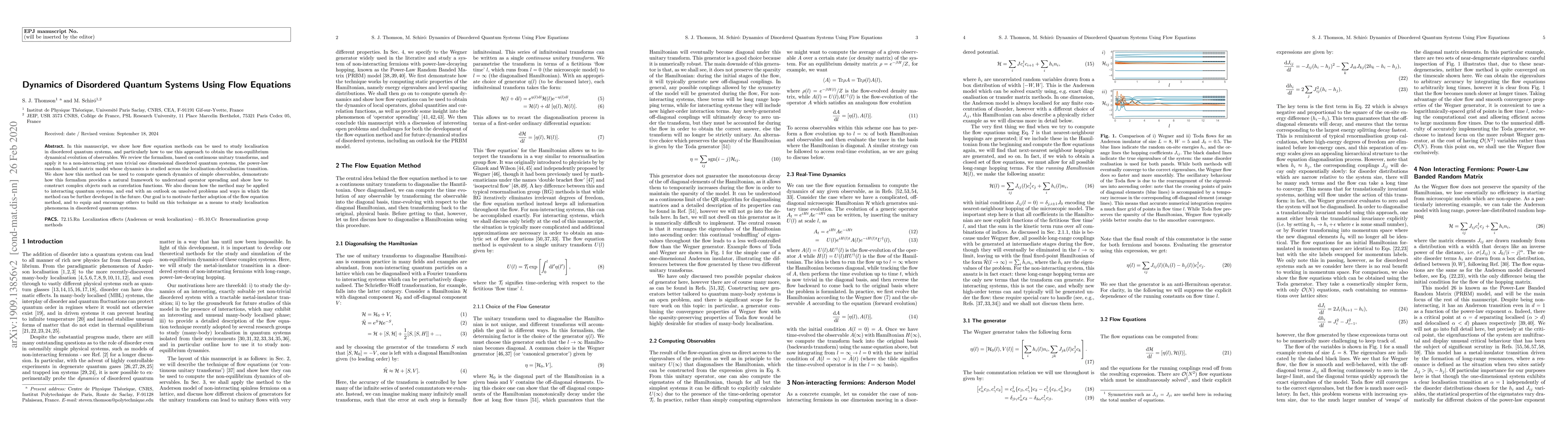 In this manuscript, we show how flow equation methods can be used to study localisation in disordered quantum systems, and particularly how to use this approach to obtain the non-equilibrium dynamical evolution of observables. We review the formalism, based on continuous unitary transforms, and apply it to a non-interacting yet non trivial one dimensional disordered quantum systems, the power-law random banded matrix model whose dynamics is studied across the localisation-delocalisation transition. We show how this method can be used to compute quench dynamics of simple observables, demonstrate how this formalism provides a natural framework to understand operator spreading and show how to construct complex objects such as correlation functions. We end with an outlook of unsolved problems and ways in which the method can be further developed in the future. Our goal is to motivate further adoption of the flow equation method, and to equip and encourage others to build on this technique as a means to study localisation phenomena in disordered quantum systems.