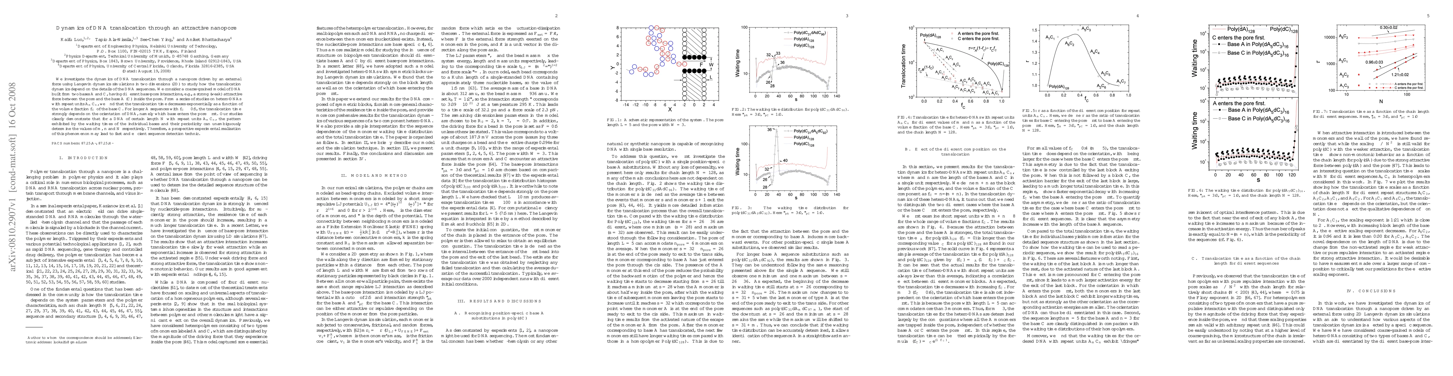This paper uses Langevin dynamics simulations to explore DNA translocation through an attractive nanopore, finding that the translocation time decreases exponentially with the volume fraction of base C. The study also reveals that the orientation of DNA significantly affects translocation time for longer A sequences.