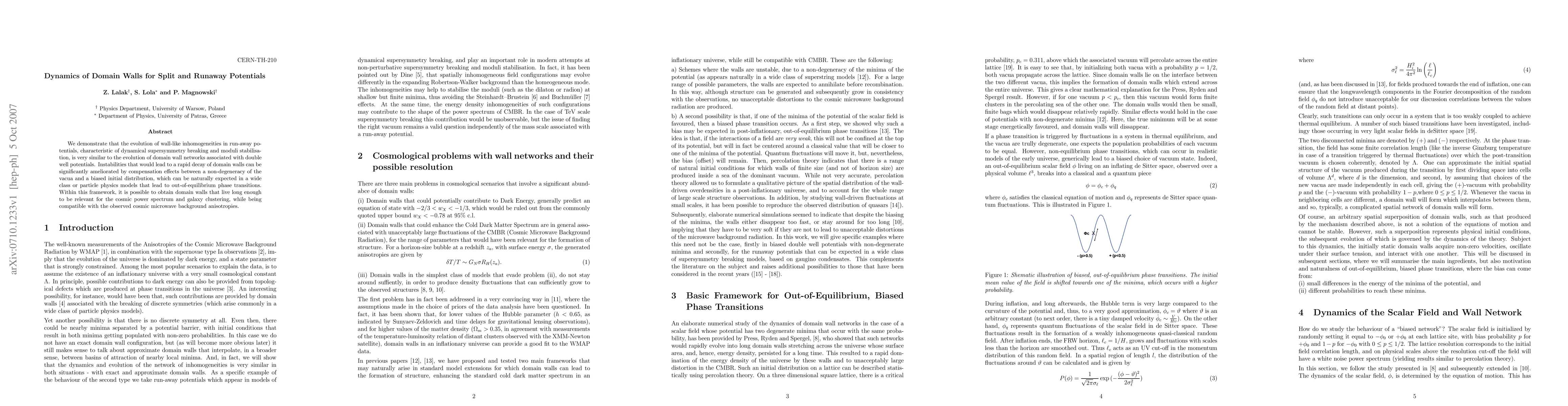 We demonstrate that the evolution of wall-like inhomogeneities in run-away potentials, characteristic of dynamical supersymmetry breaking and moduli stabilisation, is very similar to the evolution of domain wall networks associated with double well potentials. Instabilities that would lead to a rapid decay of domain walls can be significantly ameliorated by compensation effects between a non-degeneracy of the vacua and a biased initial distribution, which can be naturally expected in a wide class or particle physics models that lead to out-of-equilibrium phase transitions. Within this framework, it is possible to obtain domain walls that live long enough to be relevant for the cosmic power spectrum and galaxy clustering, while being compatible with the observed cosmic microwave background anisotropies.