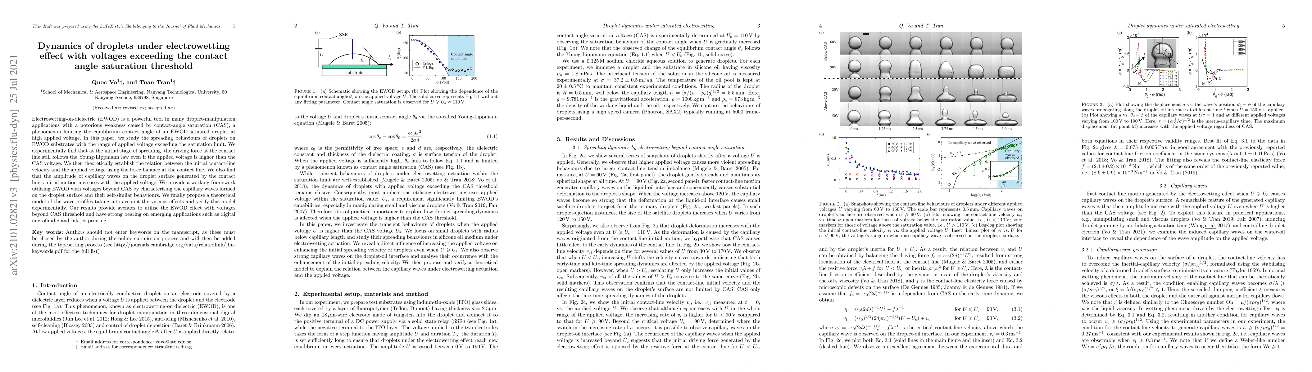 This paper investigates the dynamics of droplets on electrowetting-on-dielectric substrates under voltages surpassing the contact angle saturation threshold. It finds that initial spreading still adheres to the Young-Lippmann law and proposes a theoretical model for wave profiles on droplet surfaces considering viscous effects, opening new applications for electrowetting beyond saturation.