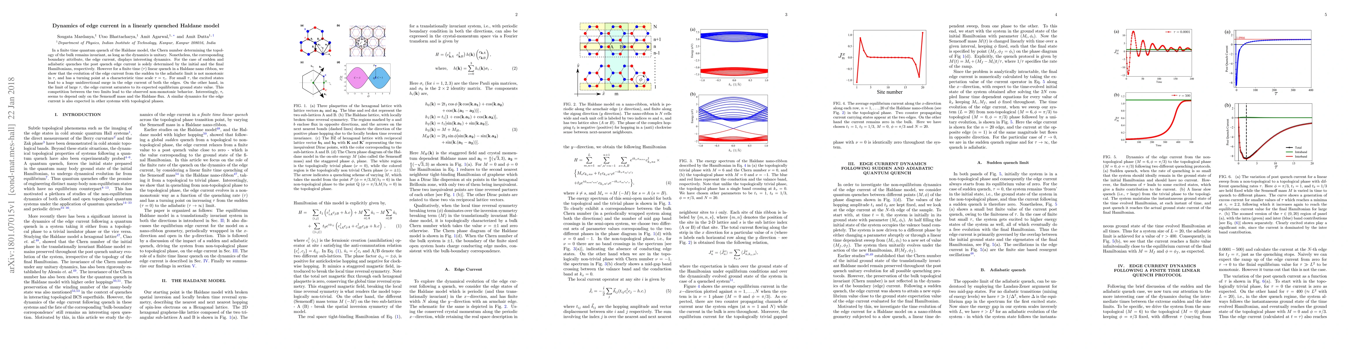 The edge current in a Haldane model exhibits non-monotonic behavior after a finite time quantum quench, with a turning point at a characteristic time scale dependent on the Semenoff mass and Haldane flux.