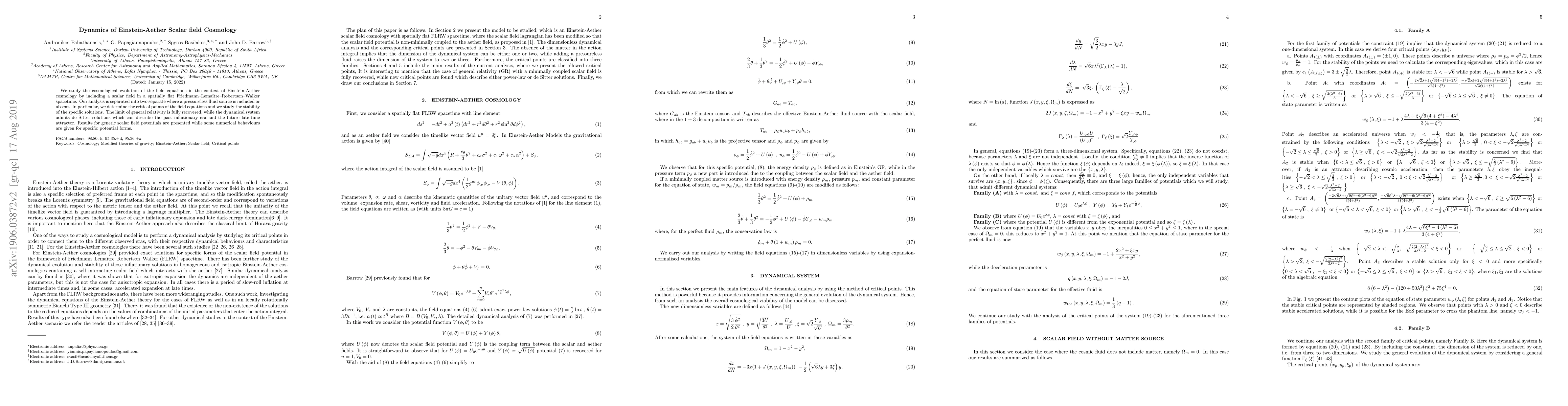 This paper investigates the cosmological dynamics of Einstein-Aether theory with a scalar field in a flat FLRW spacetime, analyzing both scenarios with and without a pressureless fluid source. It identifies critical points and examines the stability of solutions, revealing de Sitter solutions that could describe inflationary and late-time acceleration phases.
