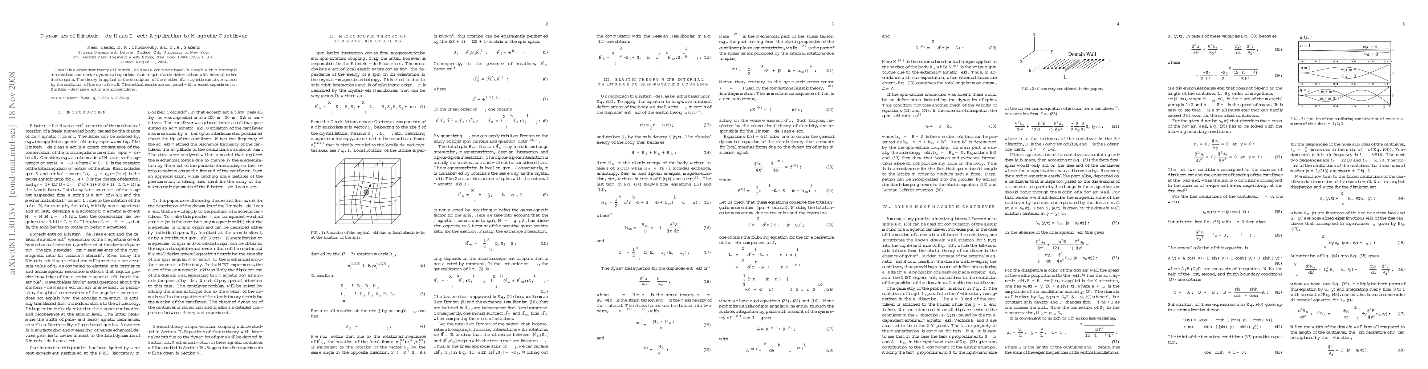 Local time-dependent theory of Einstein - de Haas effect is developed. We begin with microscopicinteractions and derive dynamical equations that couple elastic deformations with internal twists due to spins. The theory is applied to the description of the motion of a magnetic cantilever caused by the oscillation of the domain wall. Theoretical results are compared with a recent experiment on Einstein - de Haas effect in a microcantilever.
