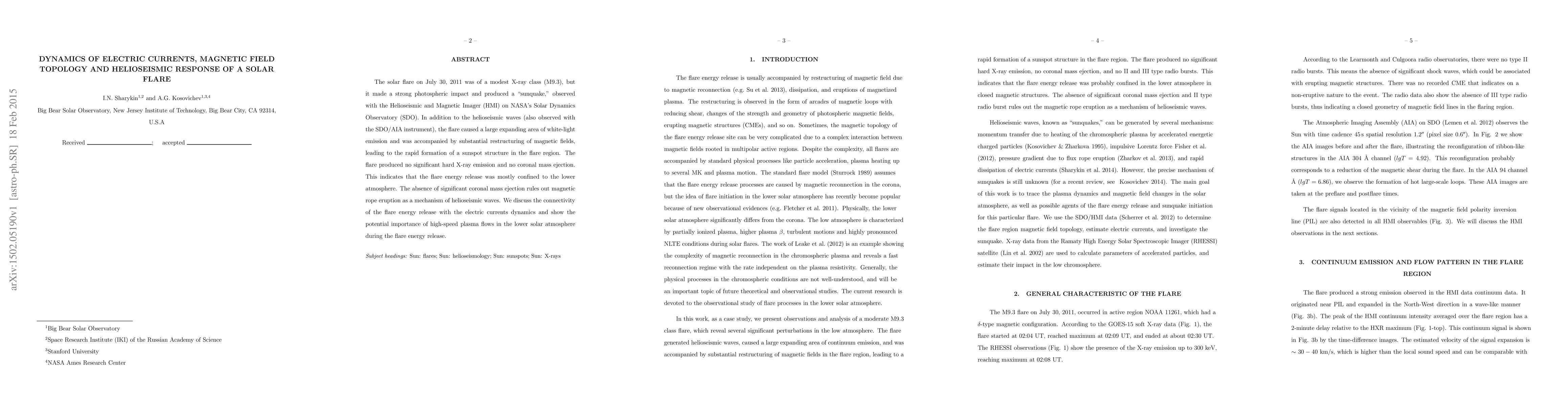 This paper investigates the modest M9.3 solar flare of July 30, 2011, which generated significant photospheric disturbances and helioseismic waves, highlighting the role of electric currents and magnetic field restructuring in the flare's energy release, with no hard X-ray emission or coronal mass ejection.
