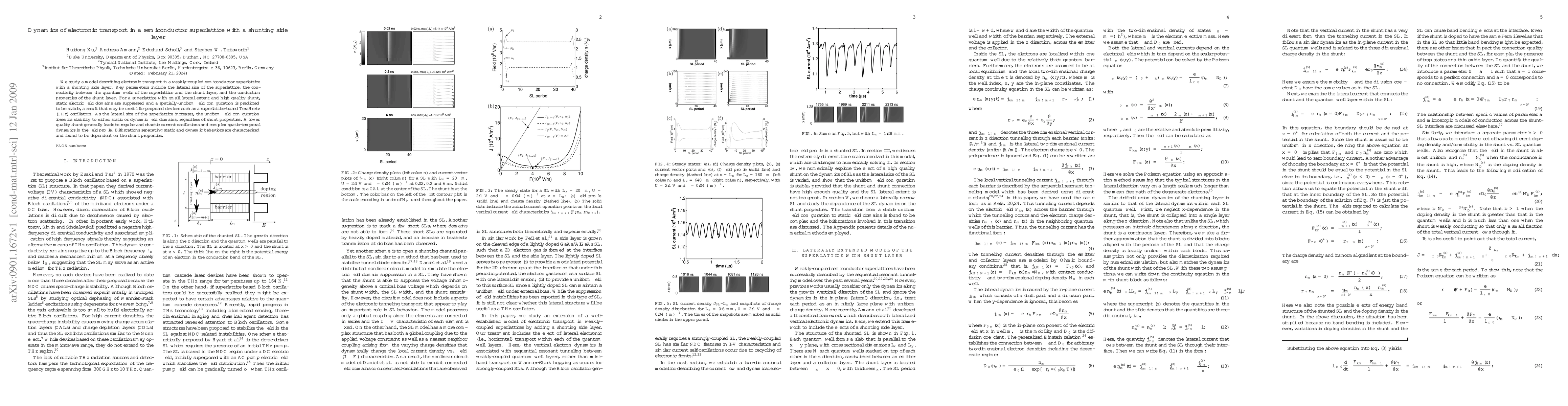 This paper investigates electronic transport in a semiconductor superlattice with a shunting side layer, finding that small superlattices with high-quality shunts maintain stable, uniform field configurations, while larger superlattices exhibit dynamic field domains and complex current oscillations dependent on shunt quality.