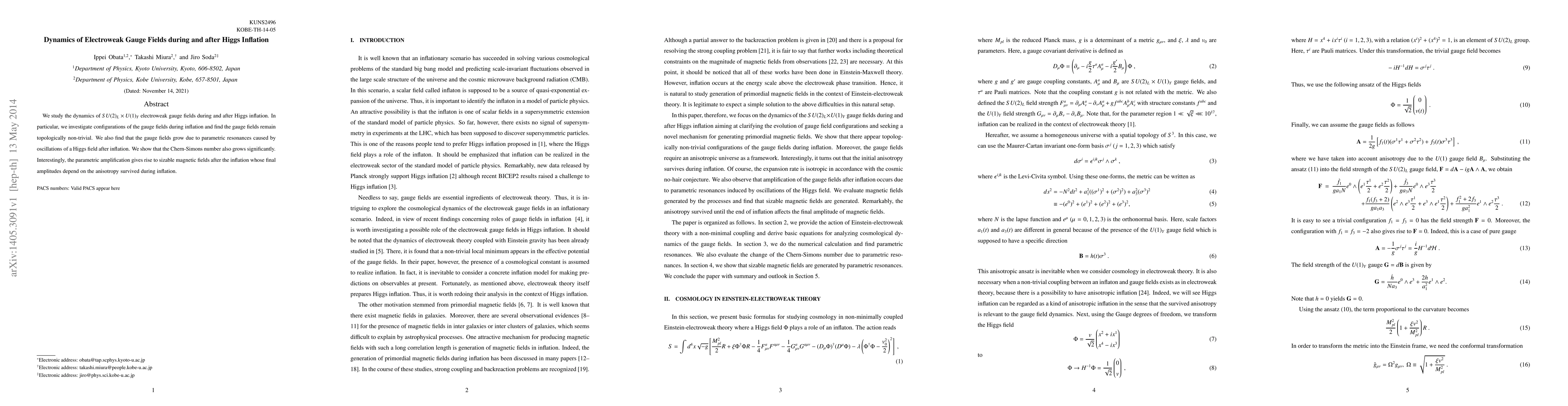 This paper investigates the dynamics of electroweak gauge fields during and after Higgs inflation, finding that they remain topologically non-trivial and grow significantly due to parametric resonances from Higgs oscillations, leading to sizable post-inflation magnetic fields whose amplitudes depend on the inflation-era anisotropy.