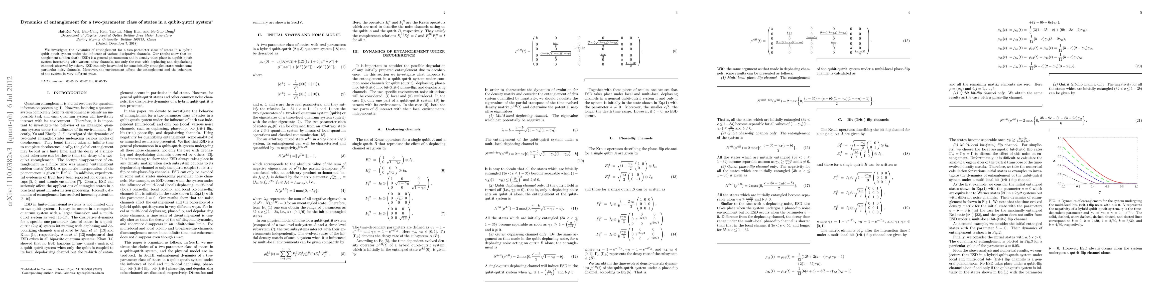 We investigate the dynamics of entanglement for a two-parameter class of states in a hybrid qubit-qutrit system under the influence of various dissipative channels. Our results show that entanglement sudden death (ESD) is a general phenomenon and it usually takes place in a qubit-qutrit system interacting with various noisy channels, not only the case with dephasing and depolarizing channels observed by others. ESD can only be avoided for some initially entangled states under some particular noisy channels. Moreover, the environment affects the entanglement and the coherence of the system in very different ways.