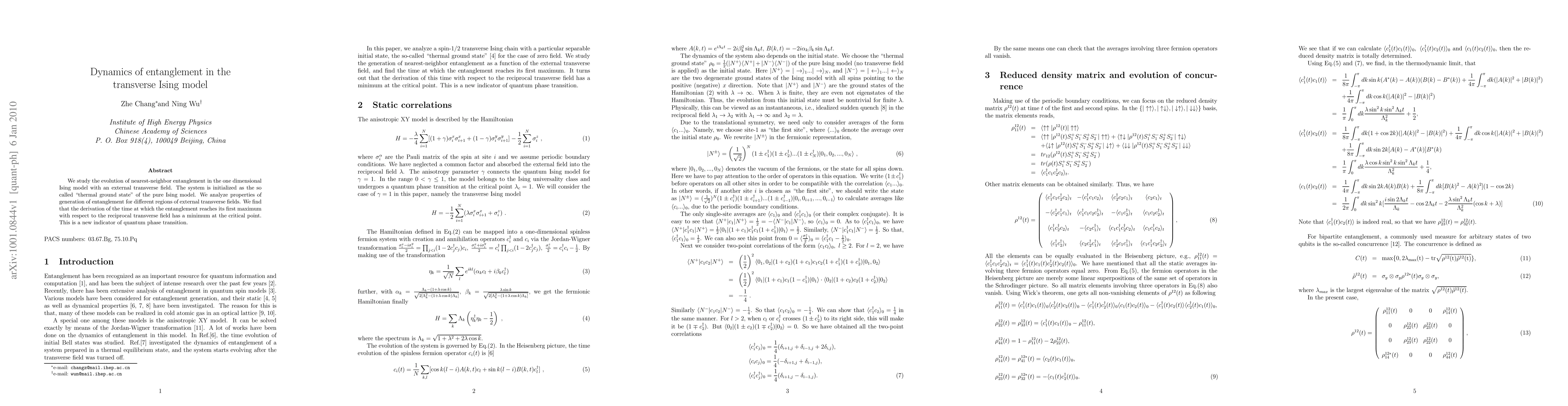 The study investigates the evolution of nearest-neighbor entanglement in a one-dimensional transverse Ising model, finding that entanglement peaks at a minimum time near the critical point of the quantum phase transition. This peak timing serves as a novel indicator of the phase transition.