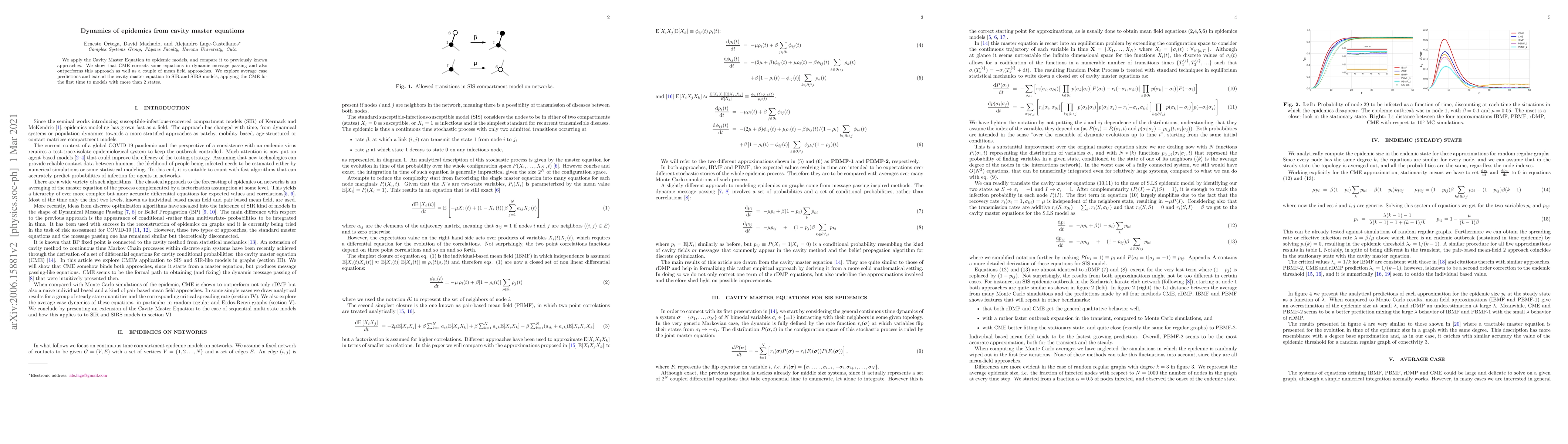 We apply the cavity master equation (CME) approach to epidemics models. We explore mostly the susceptible-infectious-susceptible (SIS) model, which can be readily treated with the CME as a two-state. We show that this approach is more accurate than individual based and pair based mean field methods, and a previously published dynamic message passing scheme. We explore average case predictions and extend the cavity master equation to SIR and SIRS models.