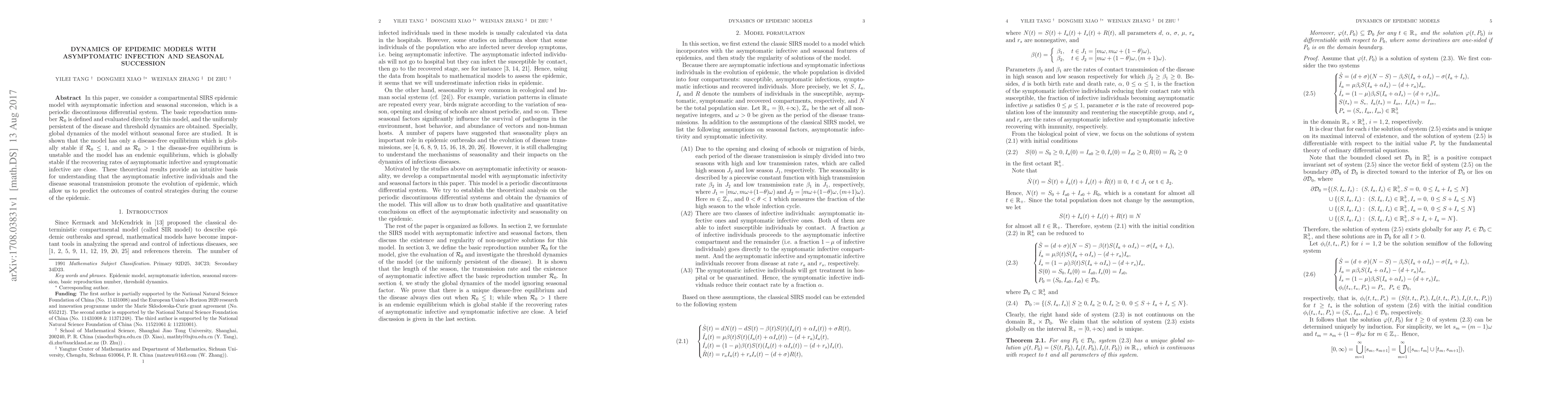The paper presents a detailed analysis of a periodic discontinuous differential system representing an SIRS model with asymptomatic infection and seasonal succession, including the calculation of the basic reproduction number $\mathcal{R}_0$ and the study of global dynamics.