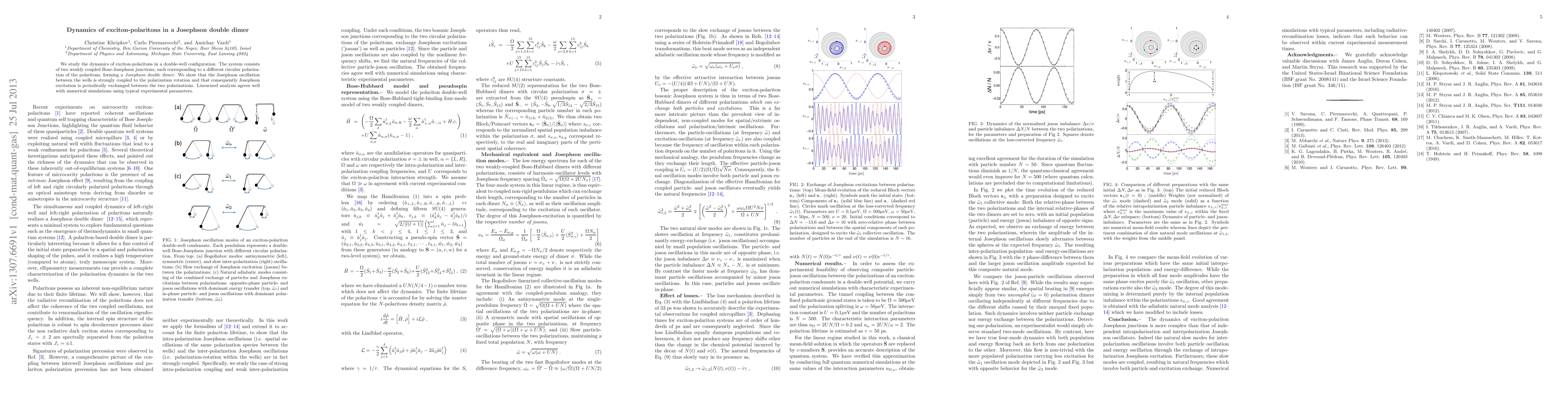 This paper investigates the dynamics of exciton-polaritons in a Josephson double dimer, revealing strong coupling between Josephson oscillations and polarization rotation, leading to periodic exchange of Josephson excitations between different polarizations. Numerical simulations corroborate the findings with typical experimental parameters.