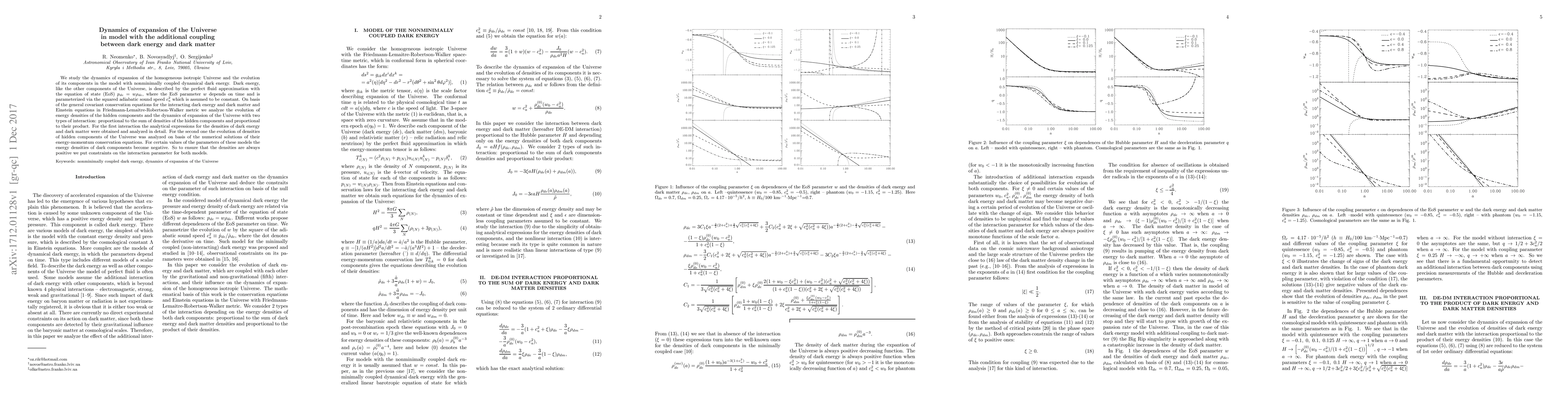 This paper investigates the expansion dynamics of the Universe in a model where dark energy and dark matter are nonminimally coupled. It explores two interaction types between these components, deriving analytical expressions for one and numerical solutions for the other, and imposes constraints to ensure positive energy densities.