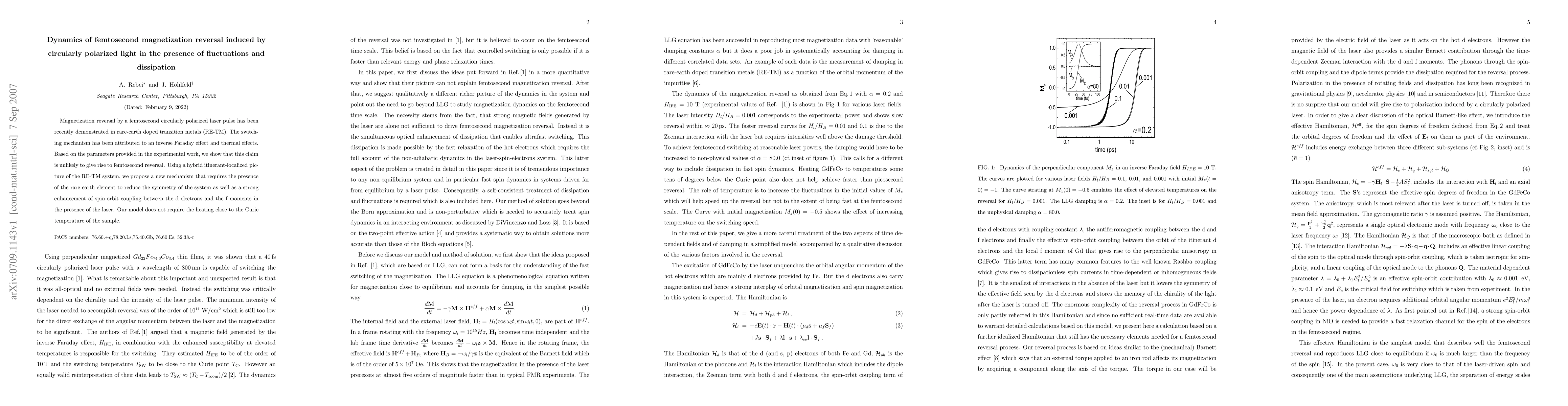 Magnetization reversal by a femtosecond circularly polarized laser pulse has been recently demonstrated in rare-earth doped transition metals (RE-TM). The switching mechanism has been attributed to an inverse Faraday effect and thermal effects. Based on the parameters provided in the experimental work, we show that this claim is unlikely to give rise to femtosecond reversal. Using a hybrid itinerant-localized picture of the RE-TM system, we propose a new mechanism that requires the presence of the rare earth element to reduce the symmetry of the system as well as a strong enhancement of spin-orbit coupling between the d electrons and the f moments in the presence of the laser. Our model does not require the heating close to the Curie temperature of the sample.