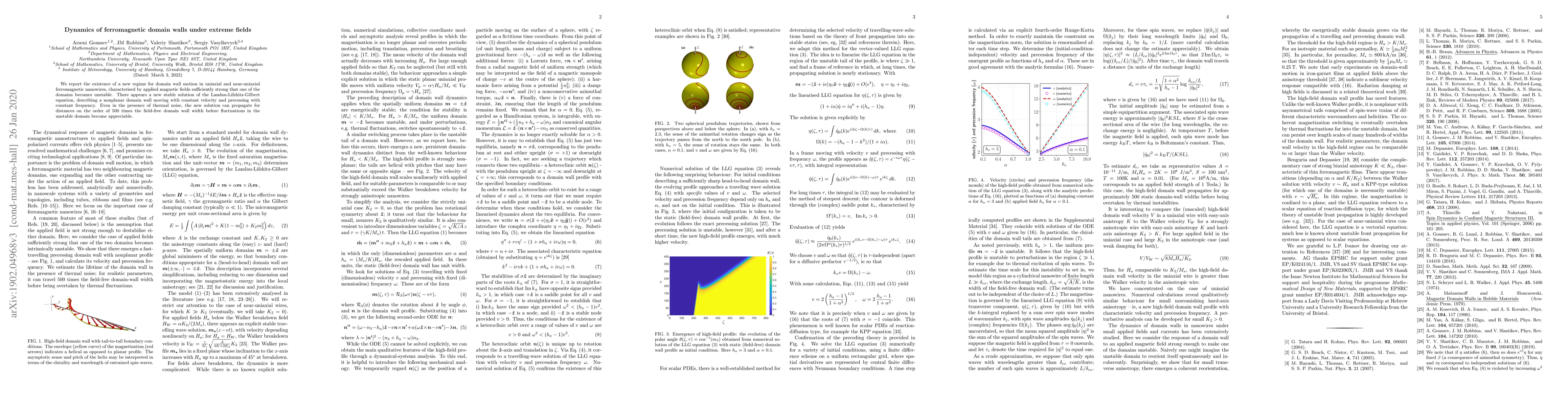 We report the existence of a new regime for domain wall motion in uniaxial and near-uniaxial ferromagnetic nanowires, characterised by applied magnetic fields sufficiently strong that one of the domains becomes unstable. There appears a new stable solution of the Landau-Lifshitz-Gilbert equation, describing a nonplanar domain wall moving with constant velocity and precessing with constant frequency. Even in the presence of thermal noise, the new solution can propagate for distances on the order of 500 times the field-free domain wall width before fluctuations in the unstable domain become appreciable.