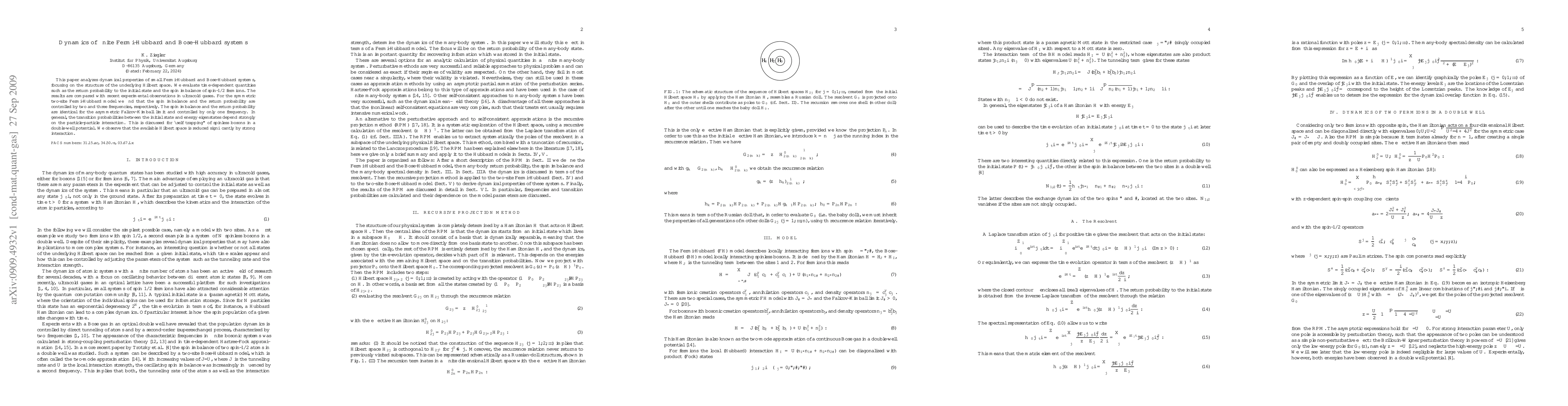 This paper investigates the dynamical properties of small Fermi-Hubbard and Bose-Hubbard systems, revealing that the return probability and spin imbalance in these systems are governed by specific frequencies depending on the model symmetry and interaction strength. The findings align with recent experimental observations in ultracold gases.