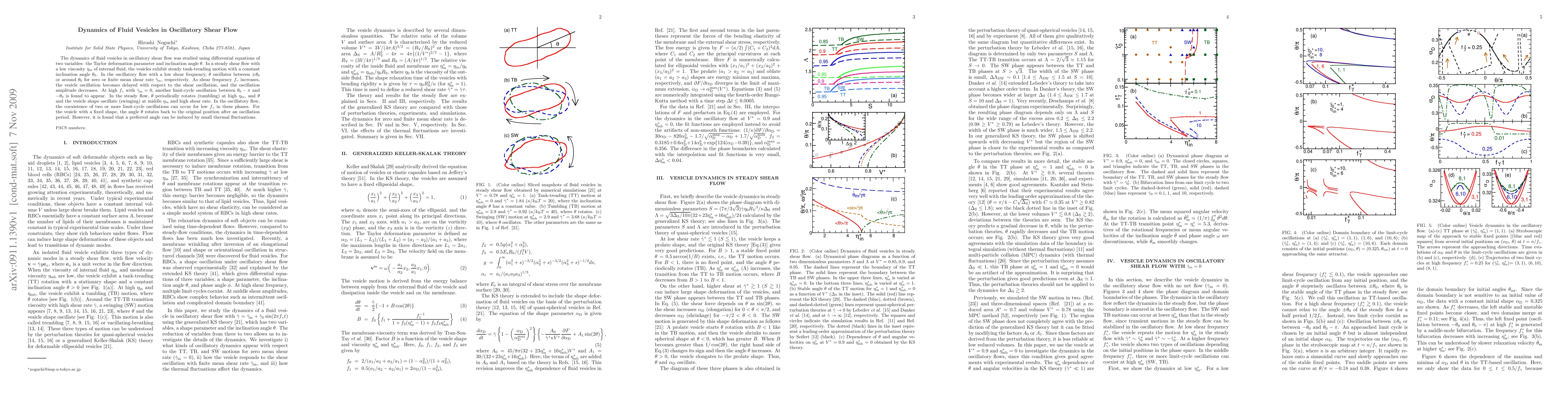 This study investigates the dynamics of fluid vesicles in oscillatory shear flow, revealing complex behaviors such as tank-treading motion, inclination angle oscillation, and limit-cycle oscillations influenced by shear frequency and internal fluid viscosity. At high shear frequencies, the vesicle exhibits delayed oscillation and a new limit-cycle pattern, while thermal fluctuations can induce a preferred angle.
