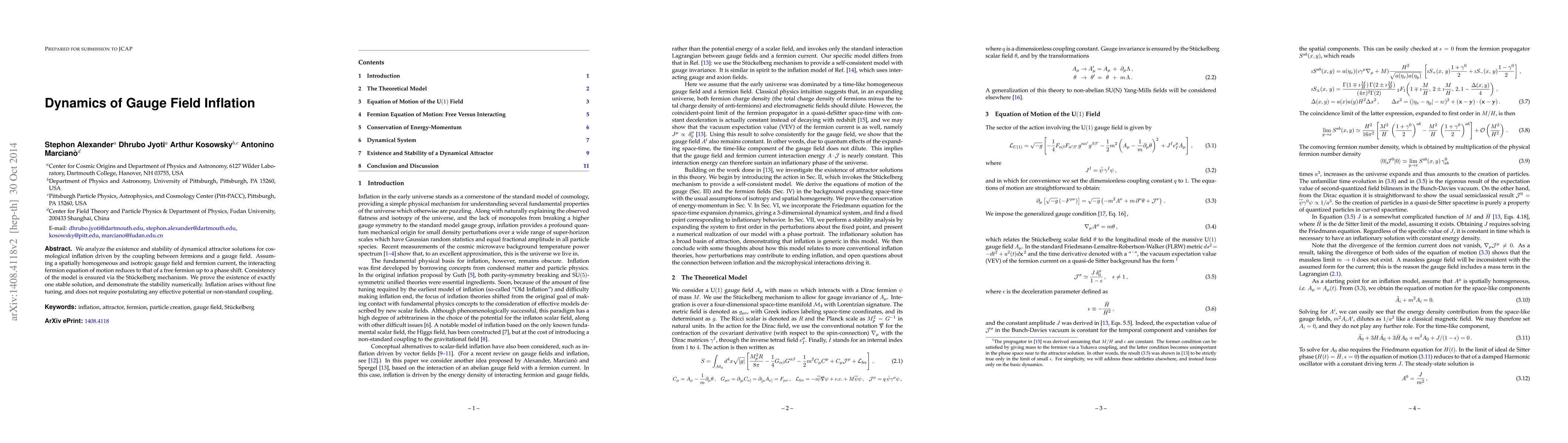 We analyze the existence and stability of dynamical attractor solutions for cosmological inflation driven by the coupling between fermions and a gauge field. Assuming a spatially homogeneous and isotropic gauge field and fermion current, the interacting fermion equation of motion reduces to that of a free fermion up to a phase shift. Consistency of the model is ensured via the Stuckelberg mechanism. We prove the existence of exactly one stable solution, and demonstrate the stability numerically. Inflation arises without fine tuning, and does not require postulating any effective potential or non-standard coupling.