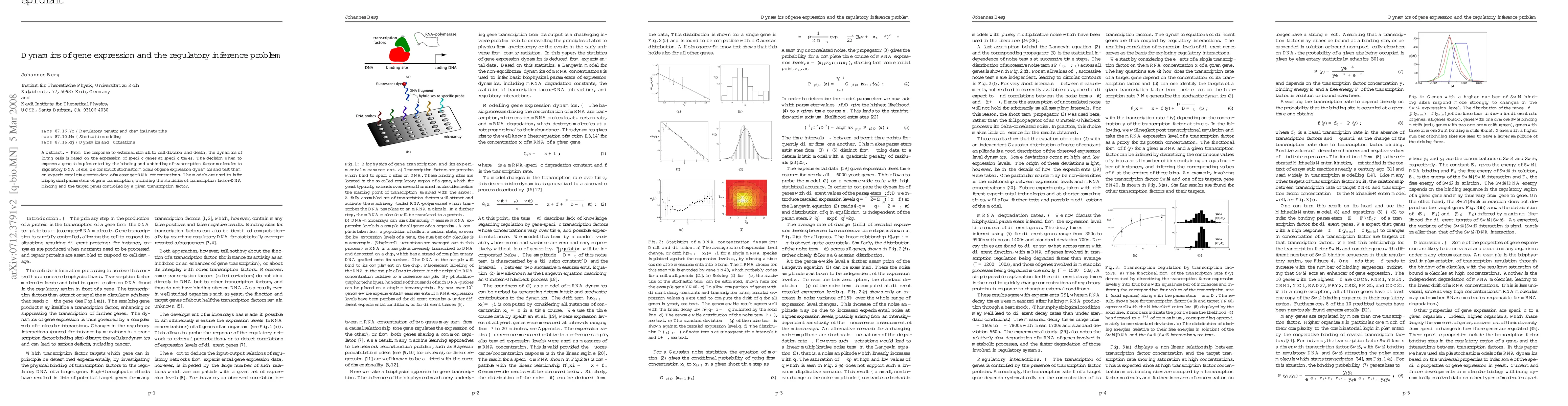 This paper constructs stochastic models to study gene expression dynamics and uses them to infer regulatory parameters from experimental mRNA concentration data, focusing on transcription factor binding and the genes they control. The models aim to understand the timing and regulation of gene expression in response to external stimuli.