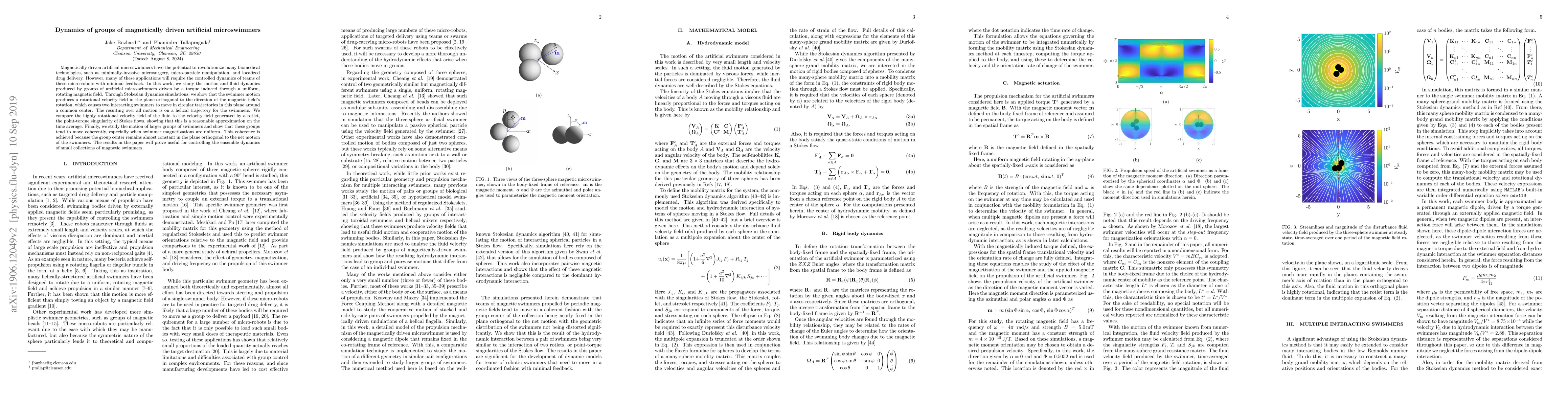 This research uses Stokesian dynamics simulations to demonstrate that groups of magnetically driven artificial microswimmers move coherently in circular and helical trajectories due to a rotational velocity field they generate. The findings suggest that uniform swimmer magnetization enhances group coherence, aiding in controlling ensemble dynamics for potential biomedical applications.