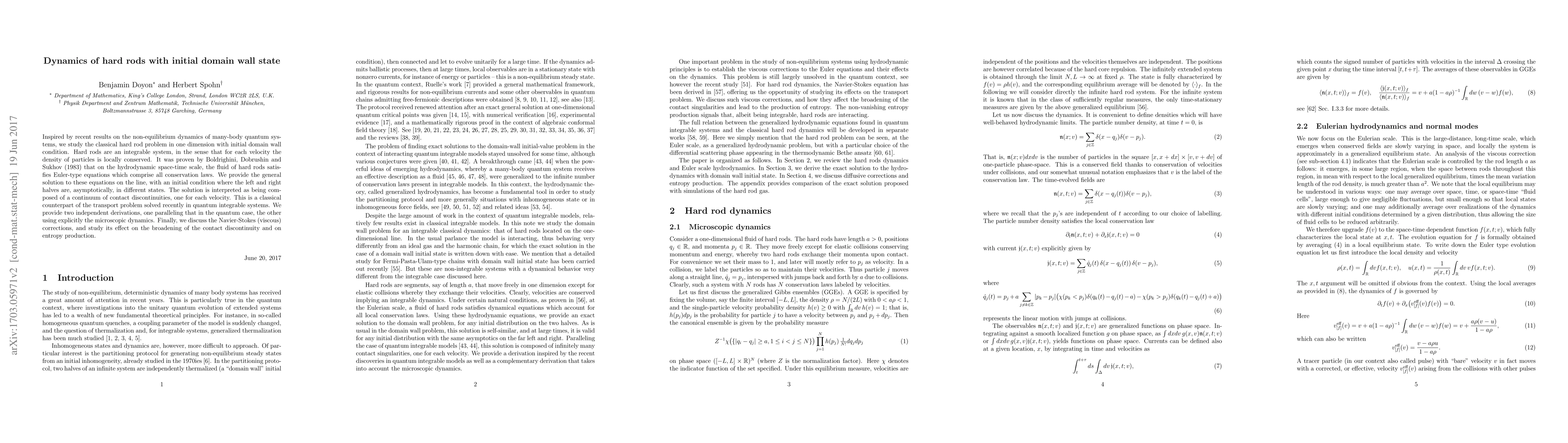 This paper explores the classical dynamics of one-dimensional hard rods starting from a domain wall state, providing a general solution to the Euler-type equations governing their motion. The study reveals a continuum of contact discontinuities and discusses viscous corrections' impact on the system's entropy production.