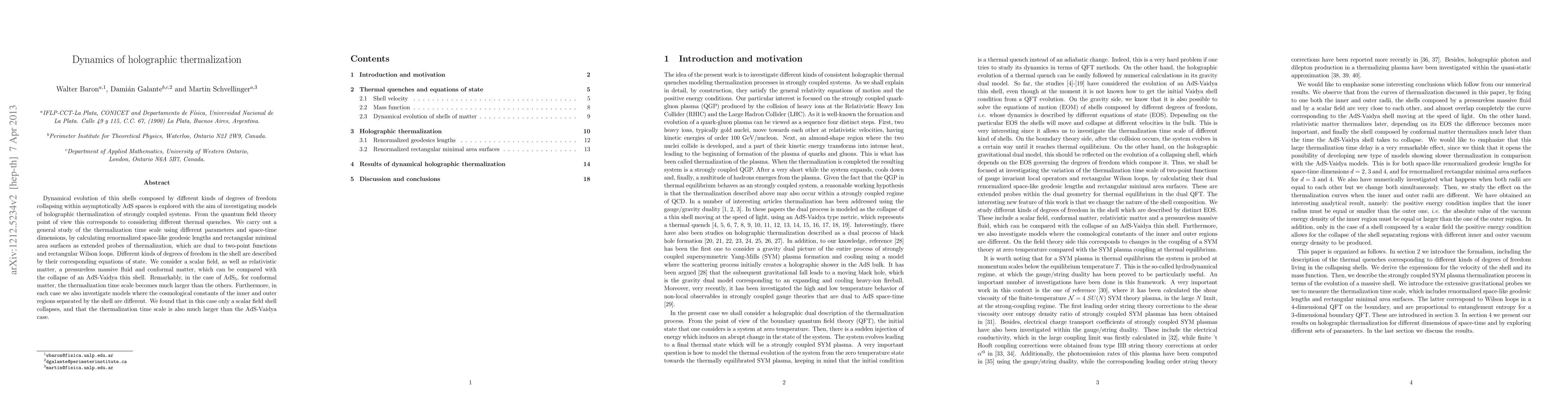 This paper investigates holographic thermalization in strongly coupled systems through the dynamics of collapsing thin shells in asymptotically AdS spaces. It compares thermalization time scales for various degrees of freedom, including scalar fields and conformal matter, and finds that conformal matter has a significantly longer thermalization time.