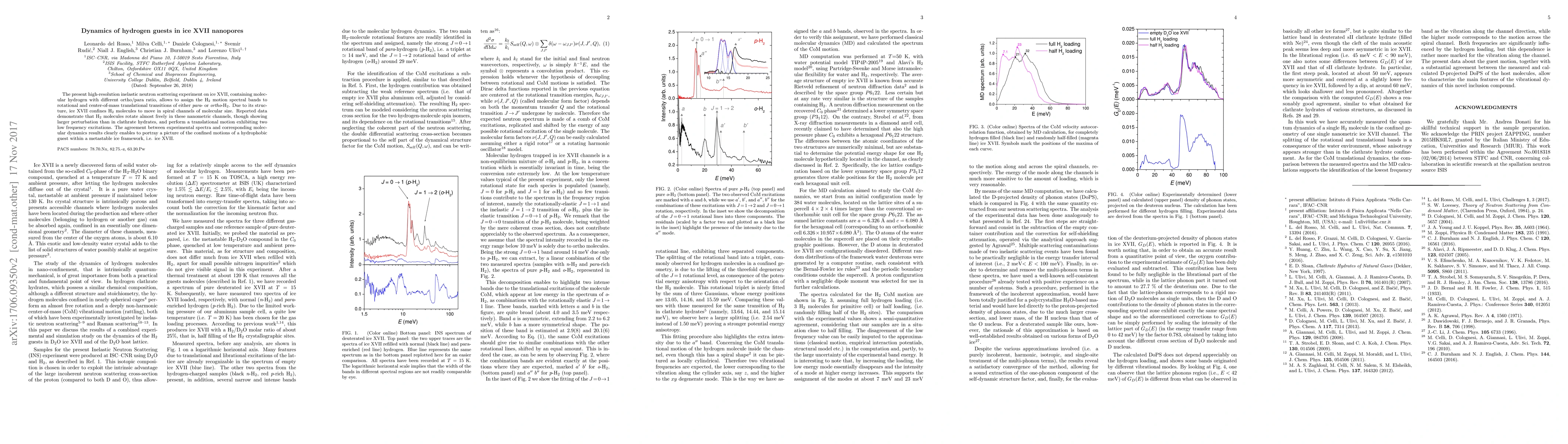 Researchers studied hydrogen molecules in ice XVII using neutron scattering, finding they rotate freely in spiral channels but show larger perturbation, and exhibit two low-frequency translational motions. The study provides insight into the confined motions of a hydrophobic guest within a metastable ice framework.
