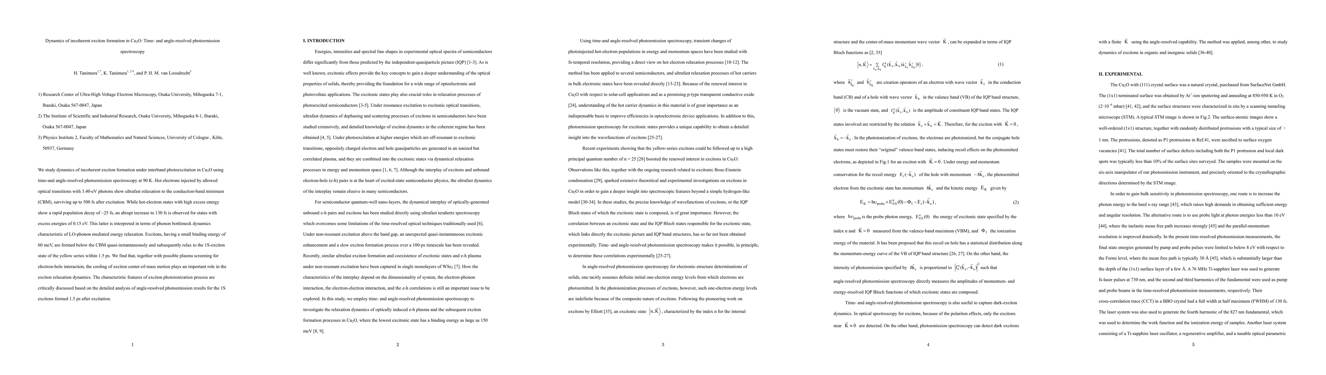 This study investigates the ultrafast dynamics of incoherent exciton formation in Cu$_2$O via time- and angle-resolved photoemission spectroscopy, revealing ultrafast relaxation of hot electrons and phonon bottleneck dynamics, with excitons forming quasi-instantaneously and relaxing to the 1S state within 1.5 ps, influenced by exciton center-of-mass cooling and plasma screening.