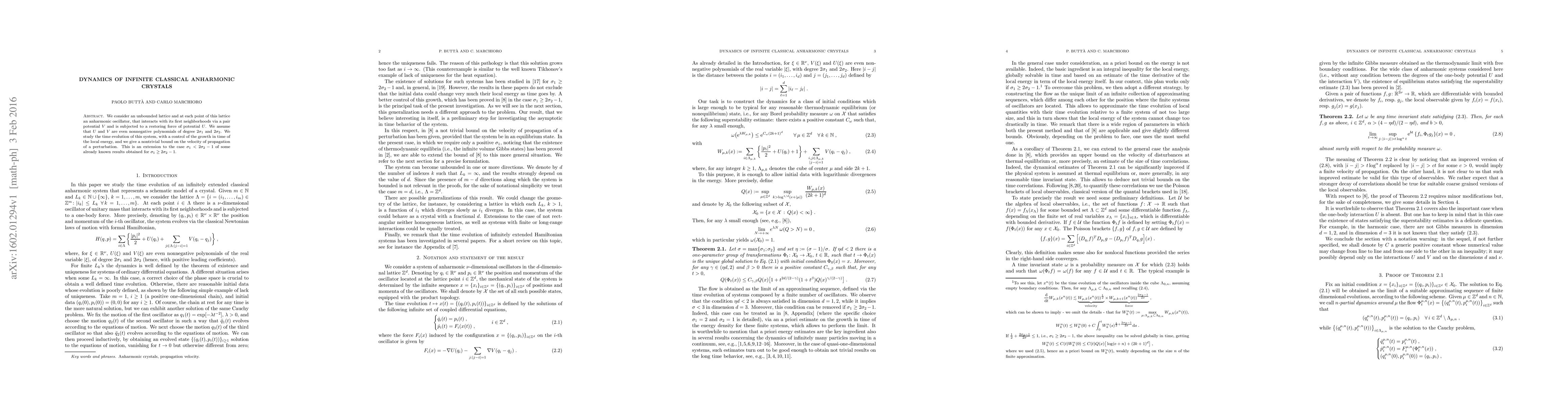 Researchers studied an infinite lattice of anharmonic oscillators with interacting potentials, finding a nontrivial bound on the velocity of propagation of a perturbation in certain cases.