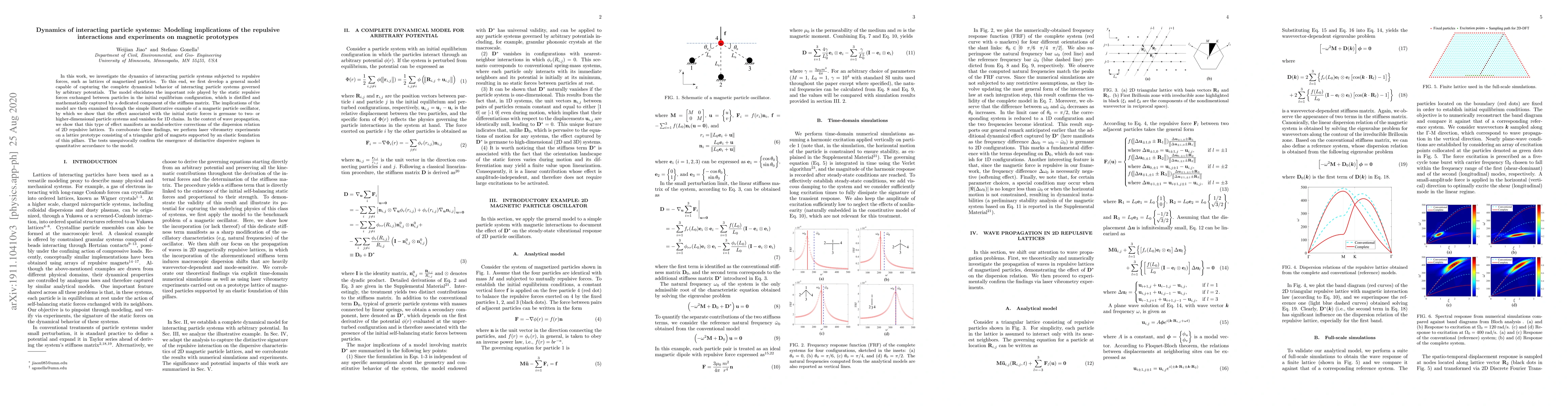 Researchers developed a model to study the dynamics of interacting particle systems with repulsive forces, which led to the discovery of modal-selective corrections in dispersion relations for 2D lattices, confirmed by experiments on magnetic prototypes.