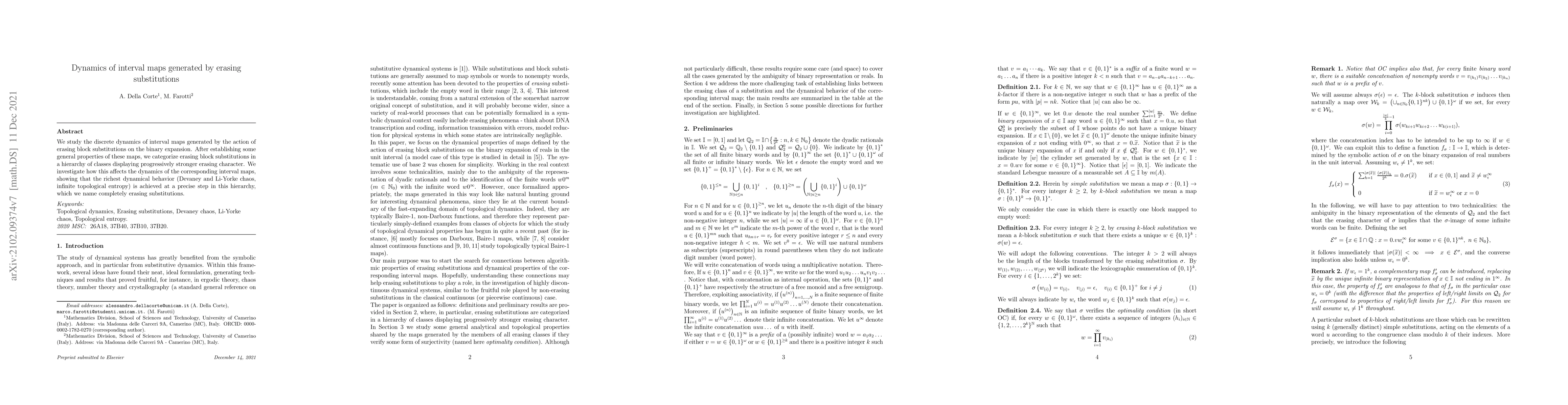 This paper examines discontinuous interval maps created by erasing block substitutions in binary expansions, categorizing these substitutions into a hierarchy based on their erasing strength. The study reveals that the most complex dynamical behavior, including Devaney and Li-Yorke chaos and infinite topological entropy, emerges at a specific level termed completely erasing substitutions.