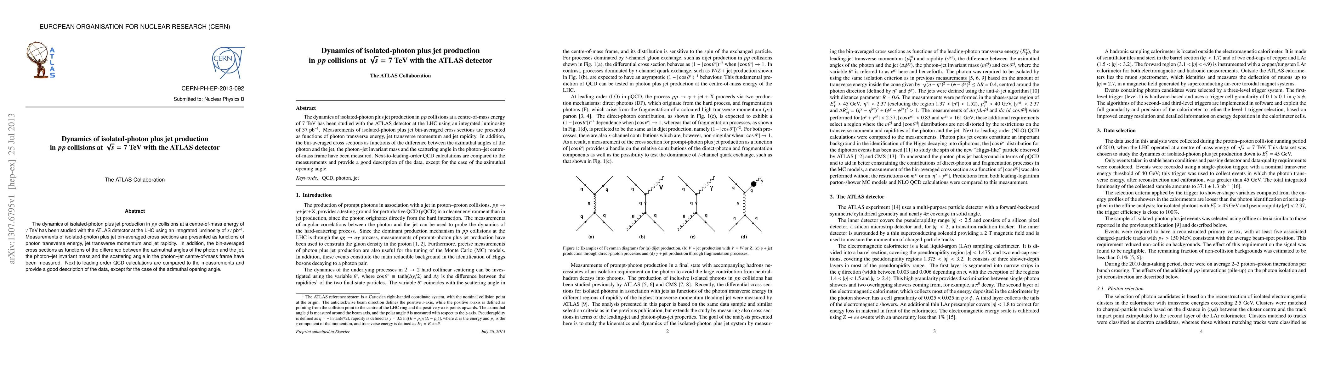 Researchers at ATLAS studied photon-jet production in high-energy collisions, measuring cross-sections as a function of various kinematic variables, and found good agreement with next-to-leading-order QCD calculations except for the azimuthal angle.