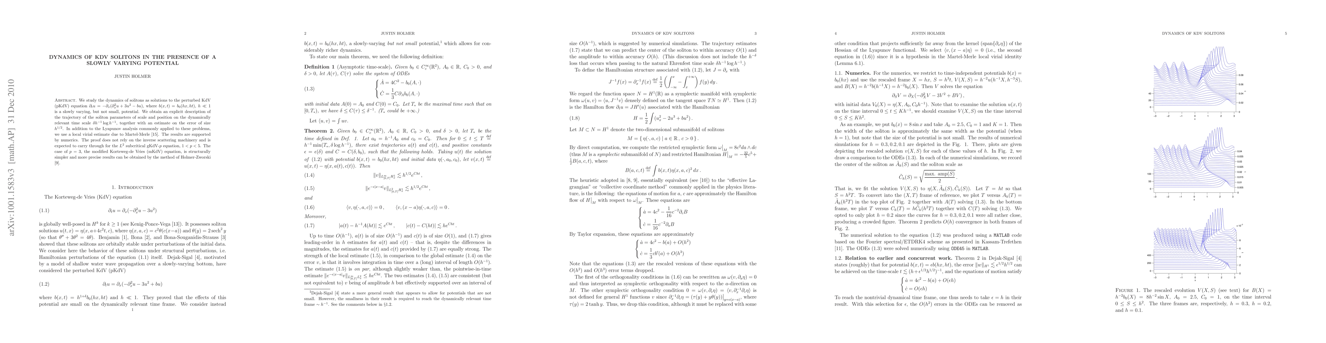 This research paper studies the dynamics of solitons in a perturbed KdV equation with a slowly varying potential, providing an explicit description of soliton parameters on a dynamically relevant time scale and estimating their error.