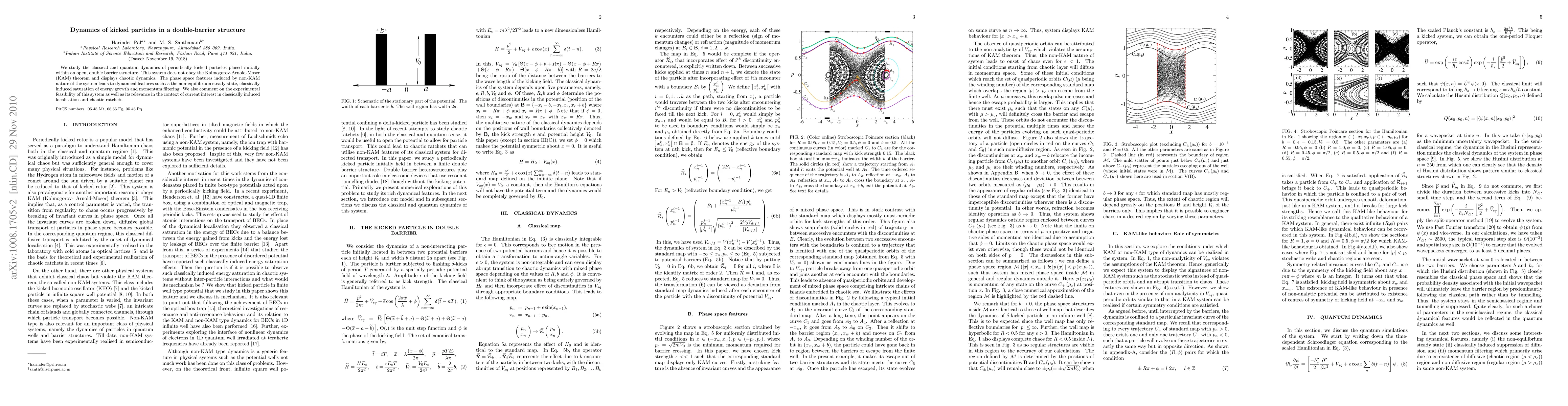 We study the classical and quantum dynamics of periodically kicked particles placed initially within an open double-barrier structure. This system does not obey the Kolmogorov-Arnold-Moser (KAM) theorem and displays chaotic dynamics. The phase space features induced by non-KAM nature of the system leads to dynamical features such as the non-equilibrium steady state, classically induced saturation of energy growth and momentum filtering. We also comment on the experimental feasibility of this system as well as its relevance in the context of current interest in classically induced localization and chaotic ratchets.