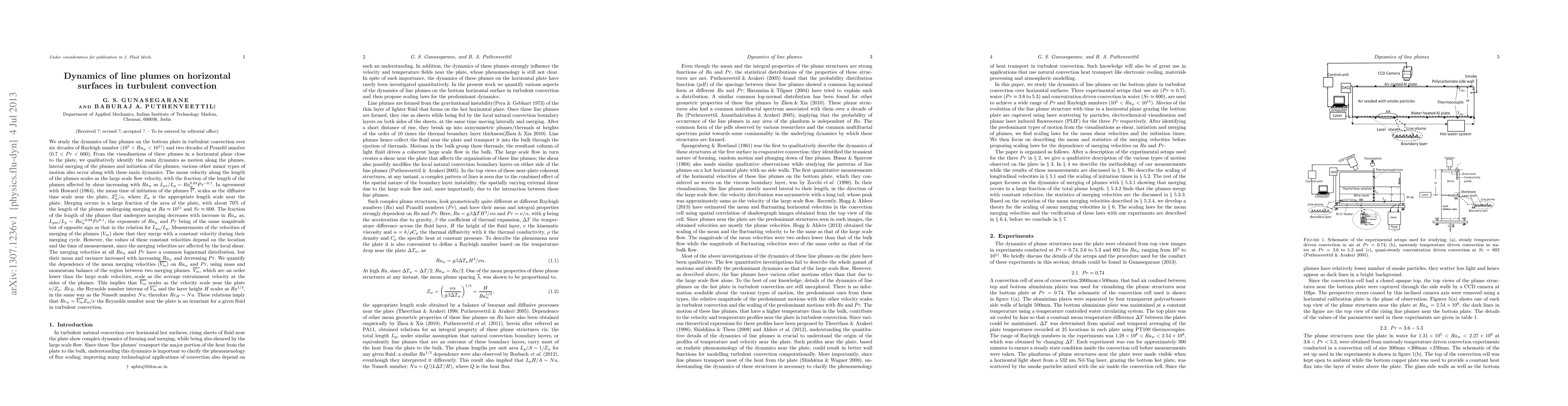 We study the dynamics of line plumes on the bottom plate in turbulent
