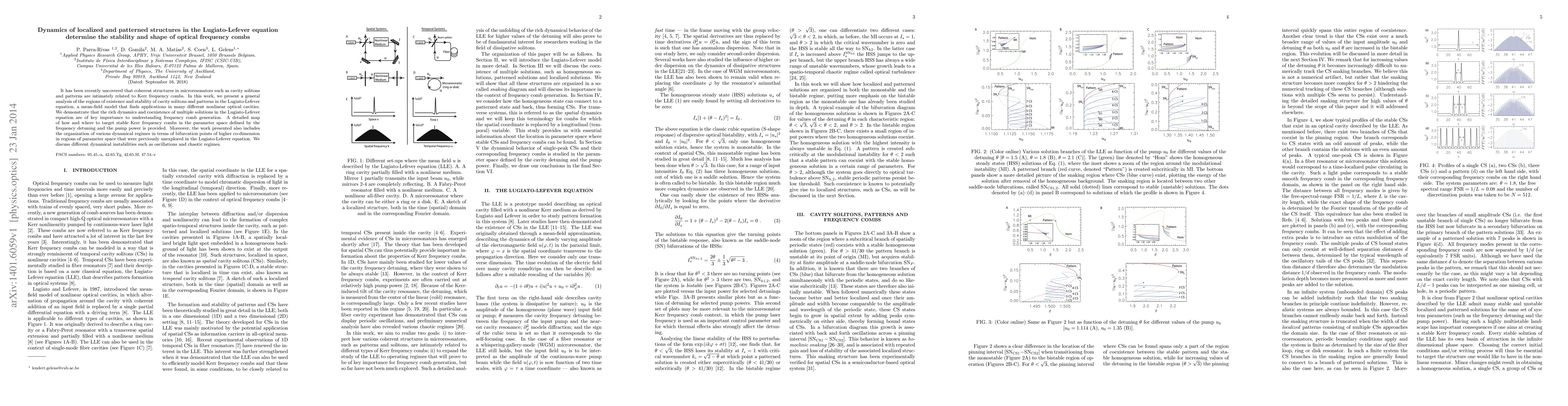 This paper analyzes the stability and dynamics of localized and patterned structures in the Lugiato-Lefever equation, revealing their role in the formation of optical frequency combs. It provides a comprehensive map for generating stable Kerr frequency combs and explores new dynamical regimes and bifurcation points.