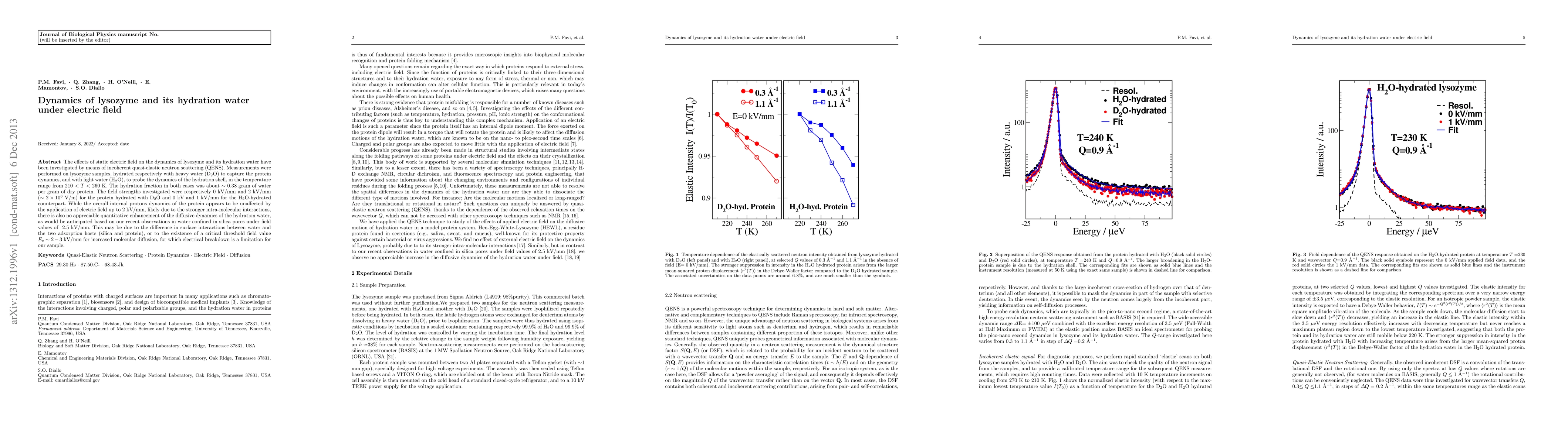 Researchers used neutron scattering to study how an electric field affects lysozyme protein dynamics and hydration water in two different types of water solutions, finding no significant impact from the electric field on either.