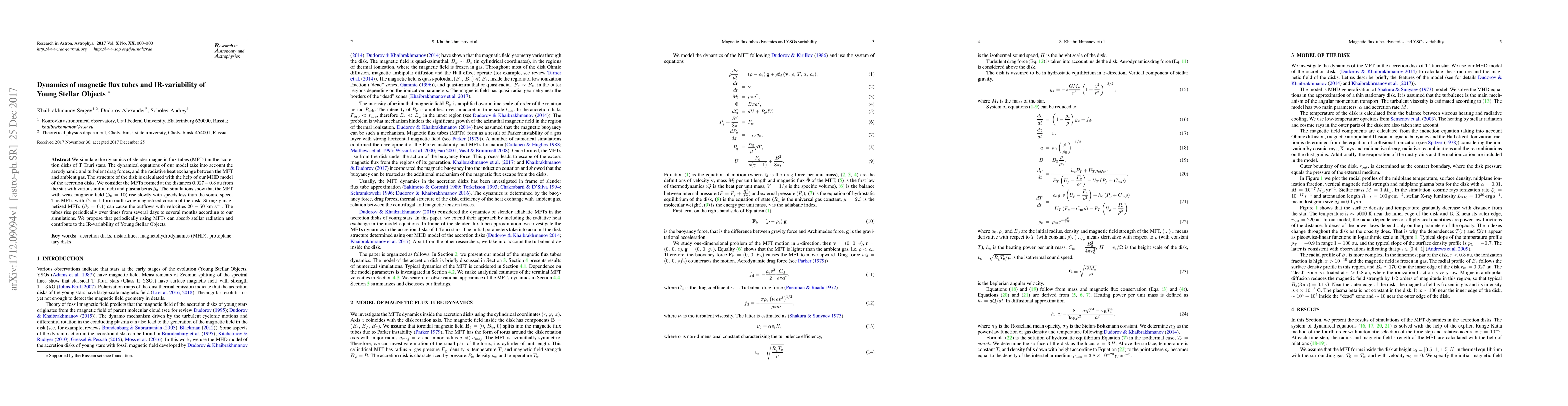 This paper simulates the dynamics of magnetic flux tubes in T Tauri star accretion disks, showing that weakly magnetized tubes rise slowly, while strongly magnetized tubes can drive outflows and contribute to the infrared variability of young stellar objects through periodic absorption of stellar radiation.