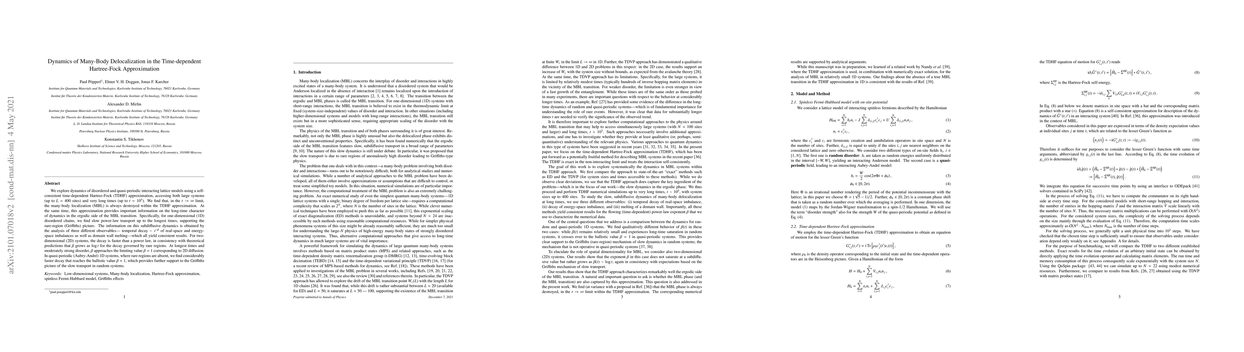 This paper investigates the dynamics of disordered and quasi-periodic interacting lattice models using the time-dependent Hartree-Fock approximation, revealing that many-body localization is destroyed in the long-time limit. It finds subdiffusive transport in 1D systems and faster-than-power-law decay in 2D systems, supporting the Griffiths picture of rare-region-governed dynamics.