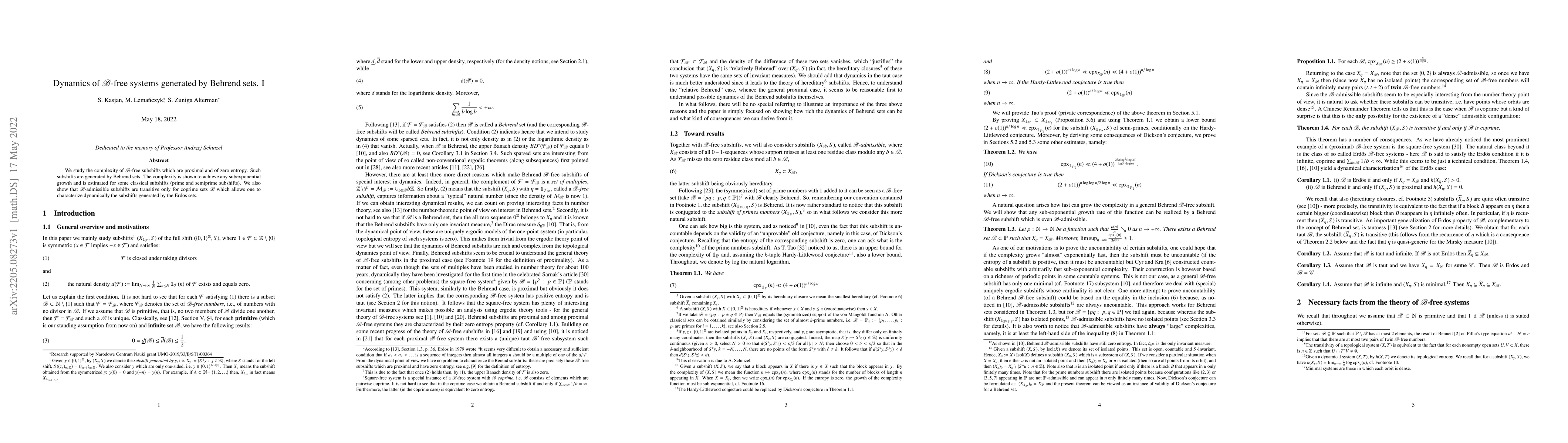 This research investigates the complexity of $\mathscr{B}$-free subshifts generated by Behrend sets, demonstrating their subexponential growth and estimating it for prime and semiprime subshifts. It also reveals that $\mathscr{B}$-admissible subshifts are transitive only for coprime $\mathscr{B}$, thus characterizing subshifts from Erdős sets dynamically.