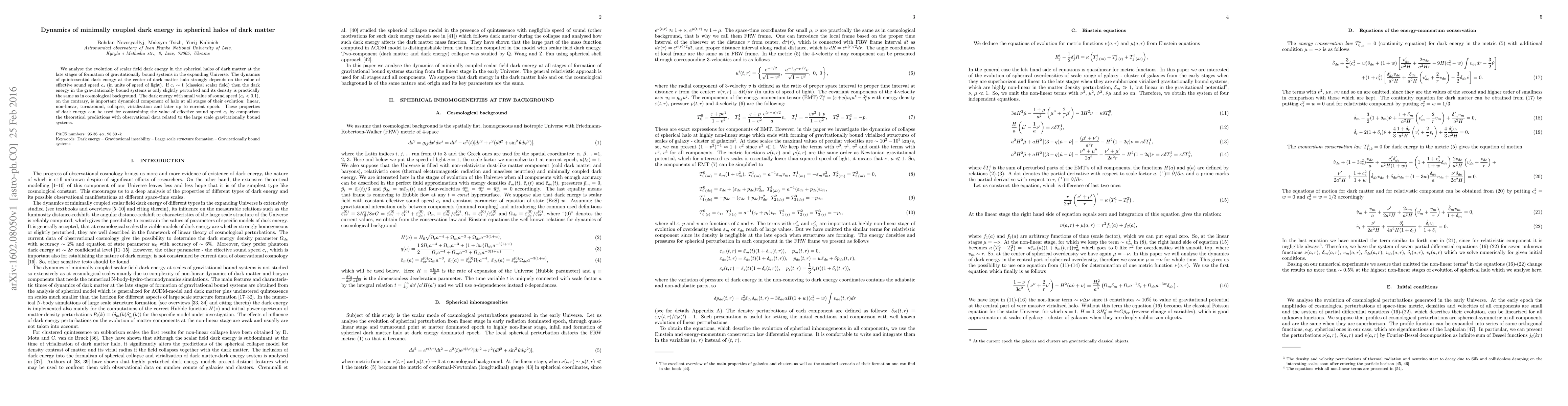 We analyse the evolution of scalar field dark energy in the spherical halos of dark matter at the late stages of formation of gravitationally bound systems in the expanding Universe. The dynamics of quintessential dark energy at the center of dark matter halo strongly depends on the value of effective sound speed $c_s$ (in units of speed of light). If $c_s\sim1$ (classical scalar field) then the dark energy in the gravitationally bound systems is only slightly perturbed and its density is practically the same as in cosmological background. The dark energy with small value of sound speed ($c_s<0.1$), on the contrary, is important dynamical component of halo at all stages of their evolution: linear, non-linear, turnaround, collapse, virialization and later up to current epoch. These properties of dark energy can be used for constraining the value of effective sound speed $c_s$ by comparison the theoretical predictions with observational data related to the large scale gravitationally bound systems.