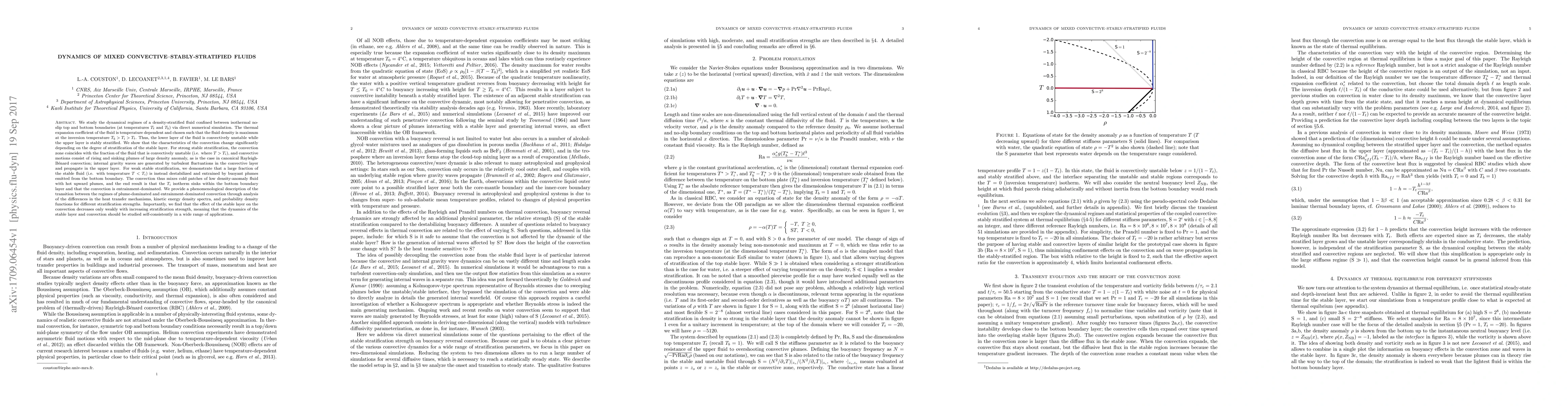 This paper investigates the dynamics of mixed convective-stable stratified fluids using direct numerical simulations. It reveals that the convection regime changes with the degree of stable stratification, transitioning from plume-dominated to entrainment-dominated convection as the stable layer's stratification weakens.